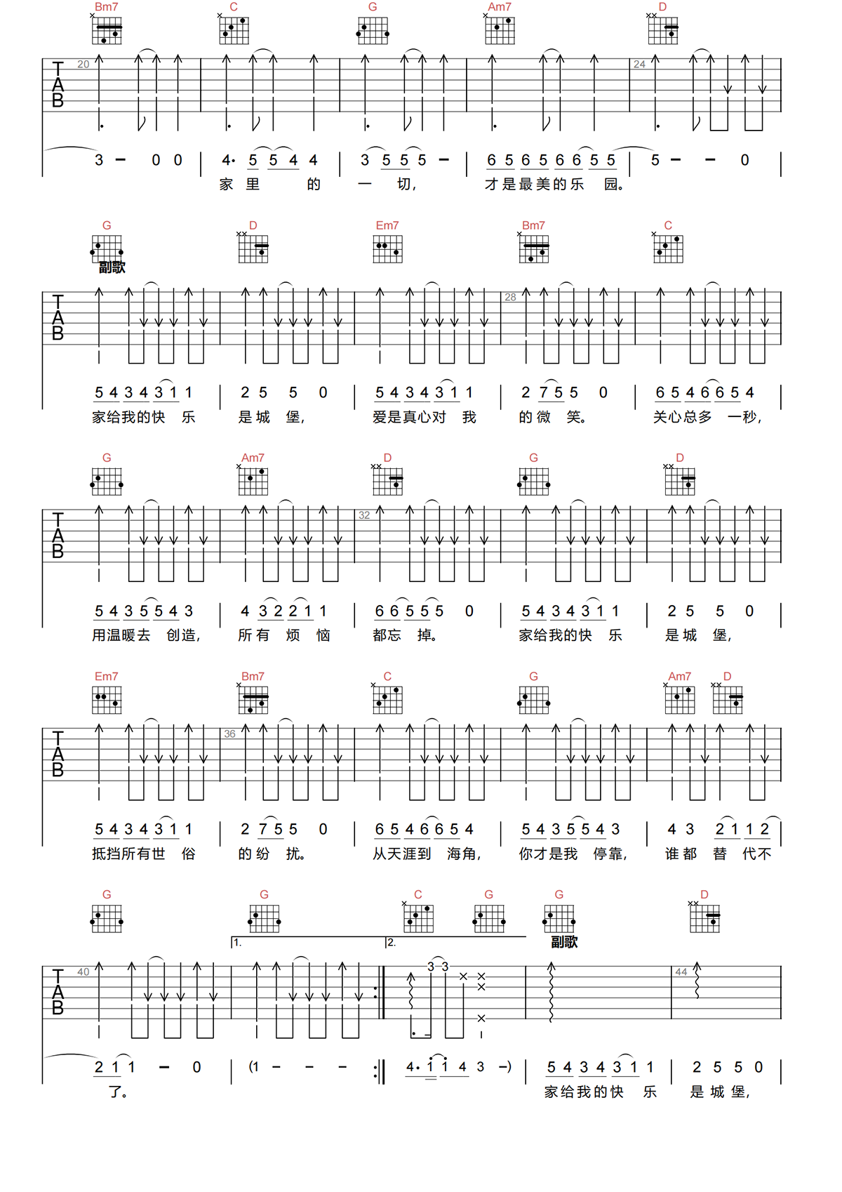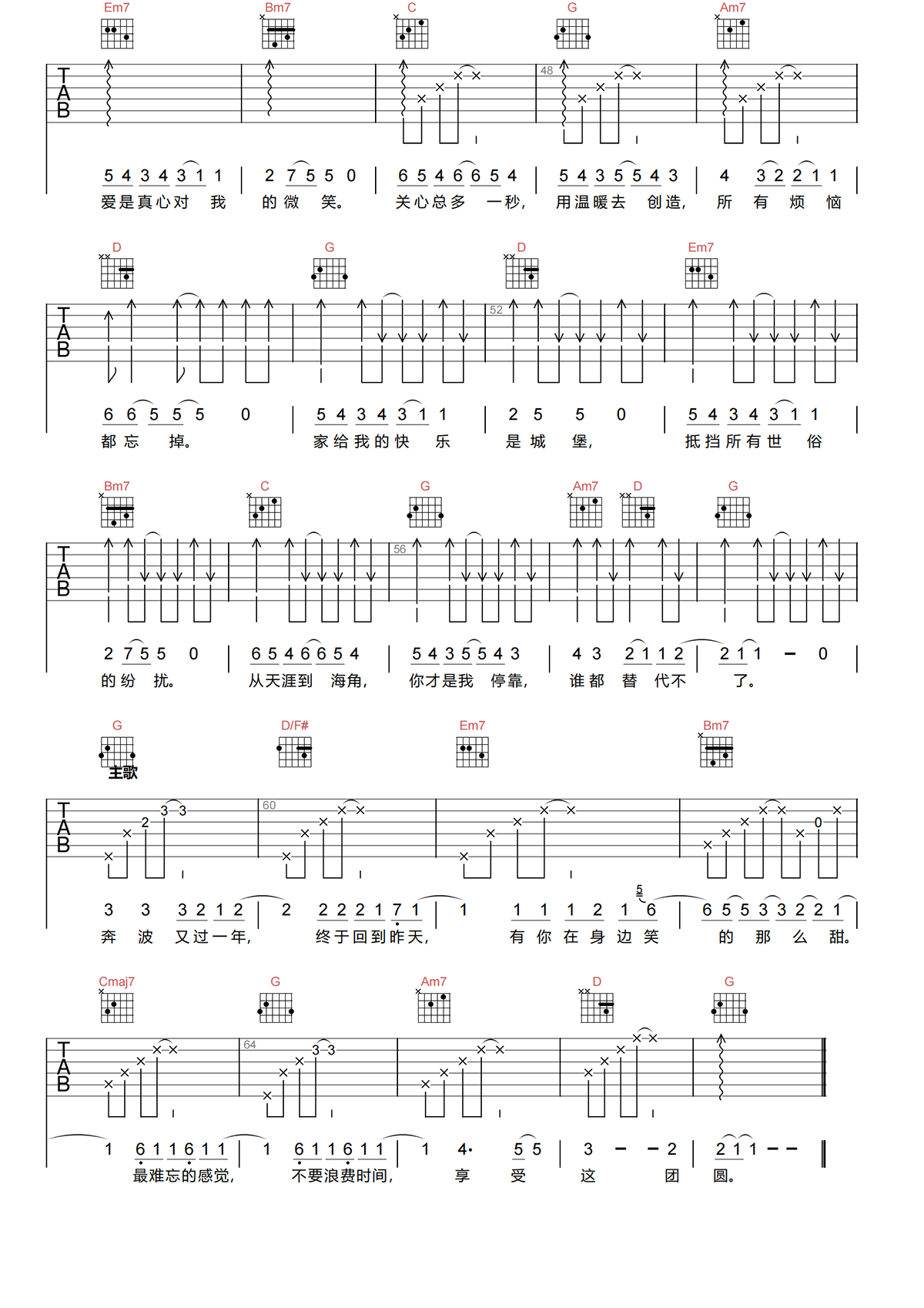 胡夏《给我的快乐吉他谱》G调原版六线谱