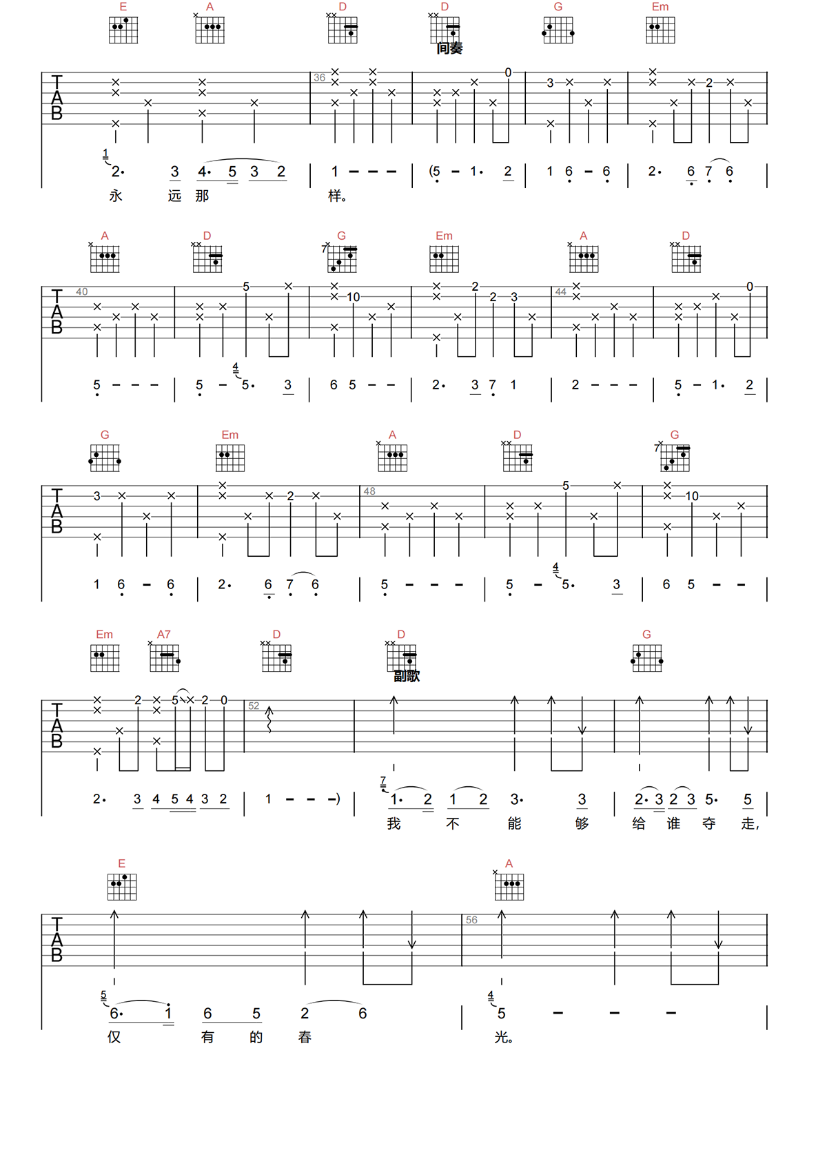 周璇《永远的微笑吉他谱》D调原版弹唱谱