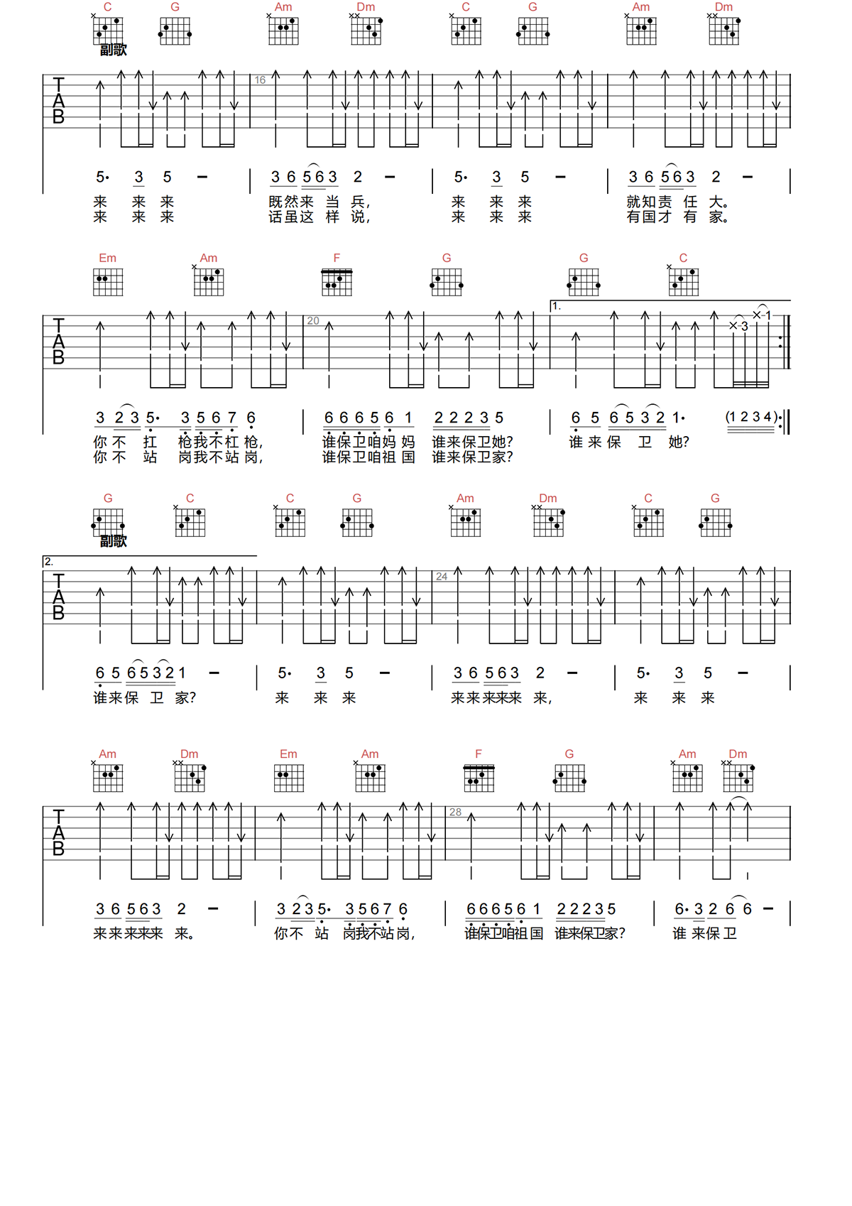 阎维文《说句心里话吉他谱》C调原版六线谱