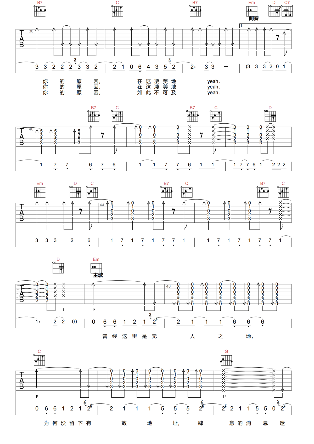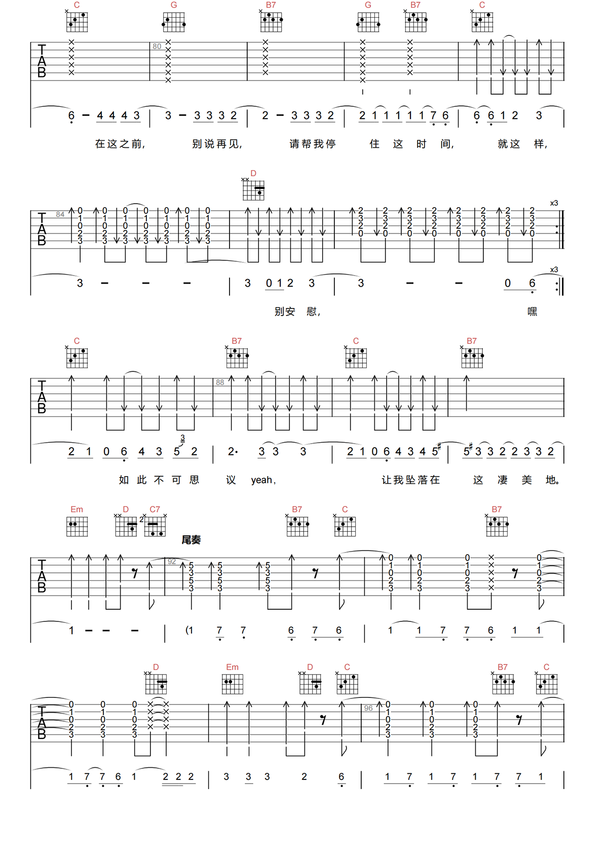 凄美地吉他谱C调-郭顶《凄美地》完整精编版六线谱
