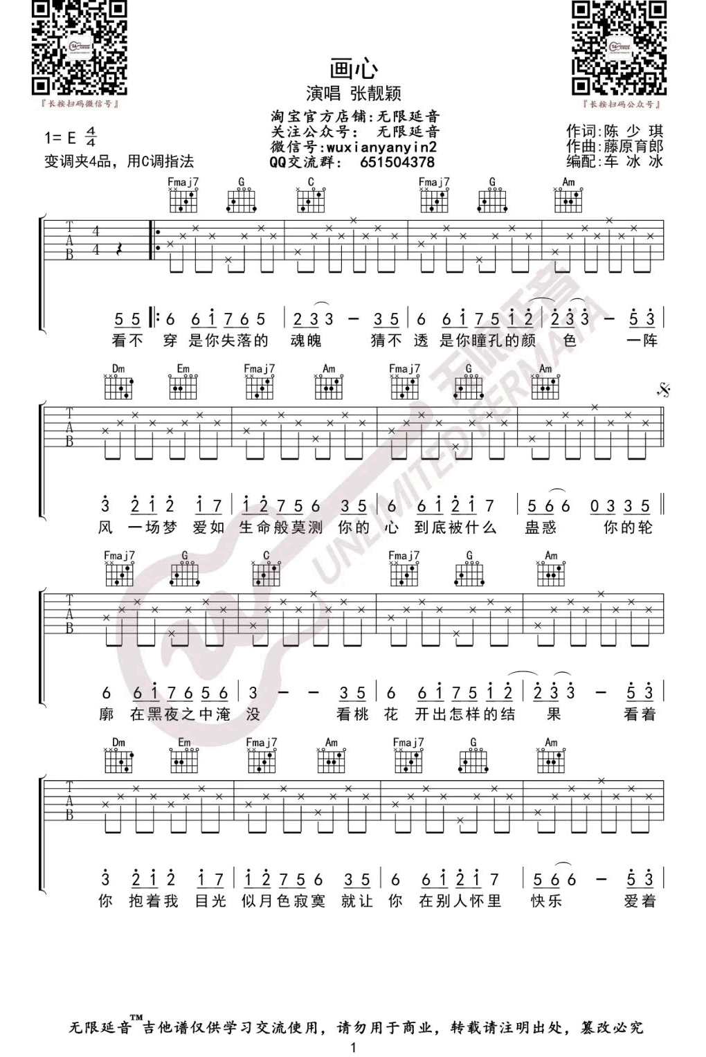 画心吉他谱C调-张靓颖《画心》完整原版六线谱