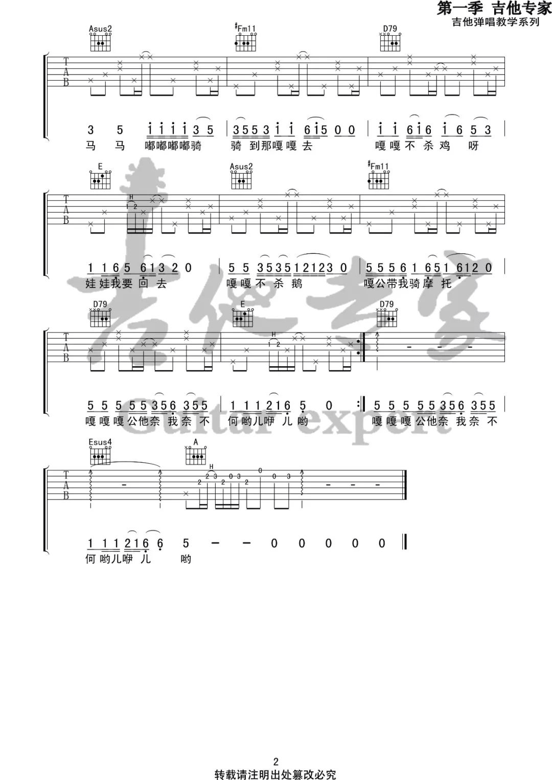 斯斯与凡《马马嘟嘟骑吉他谱》A调原版六线谱