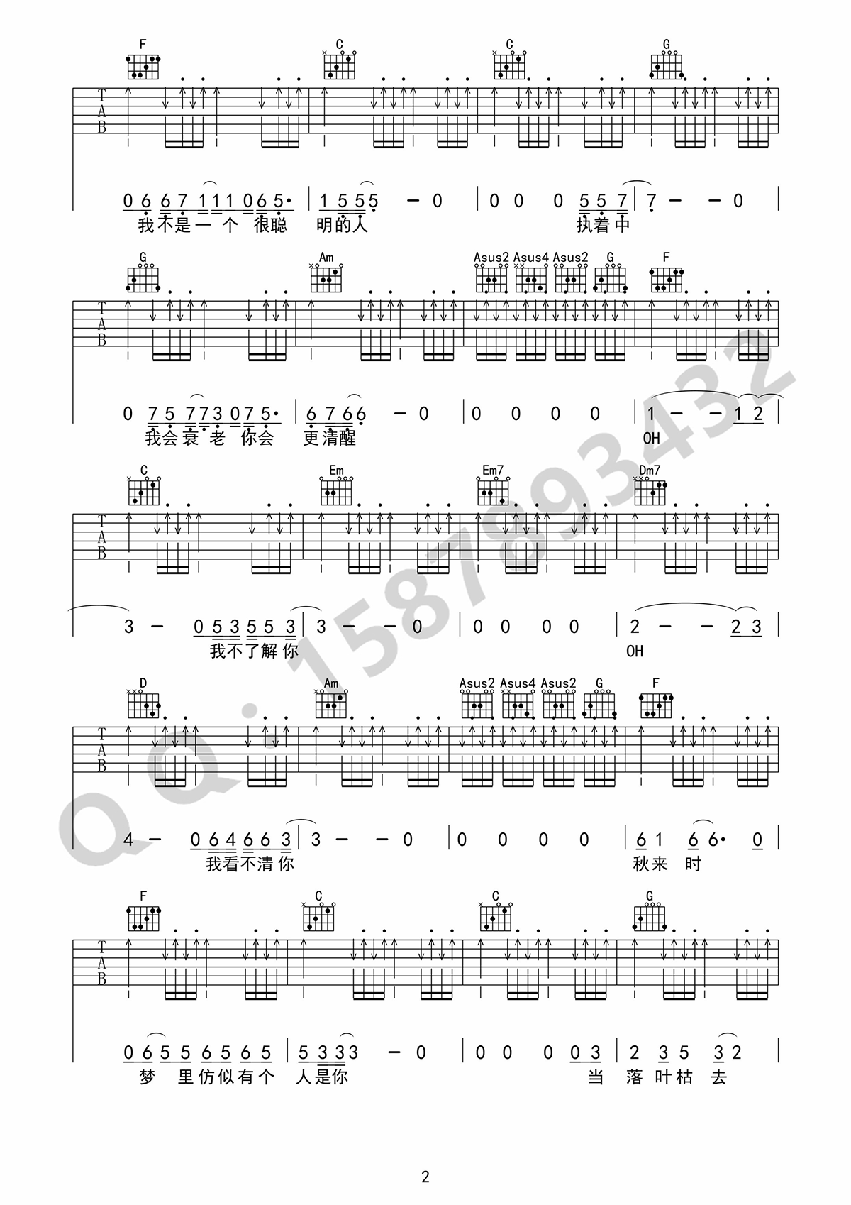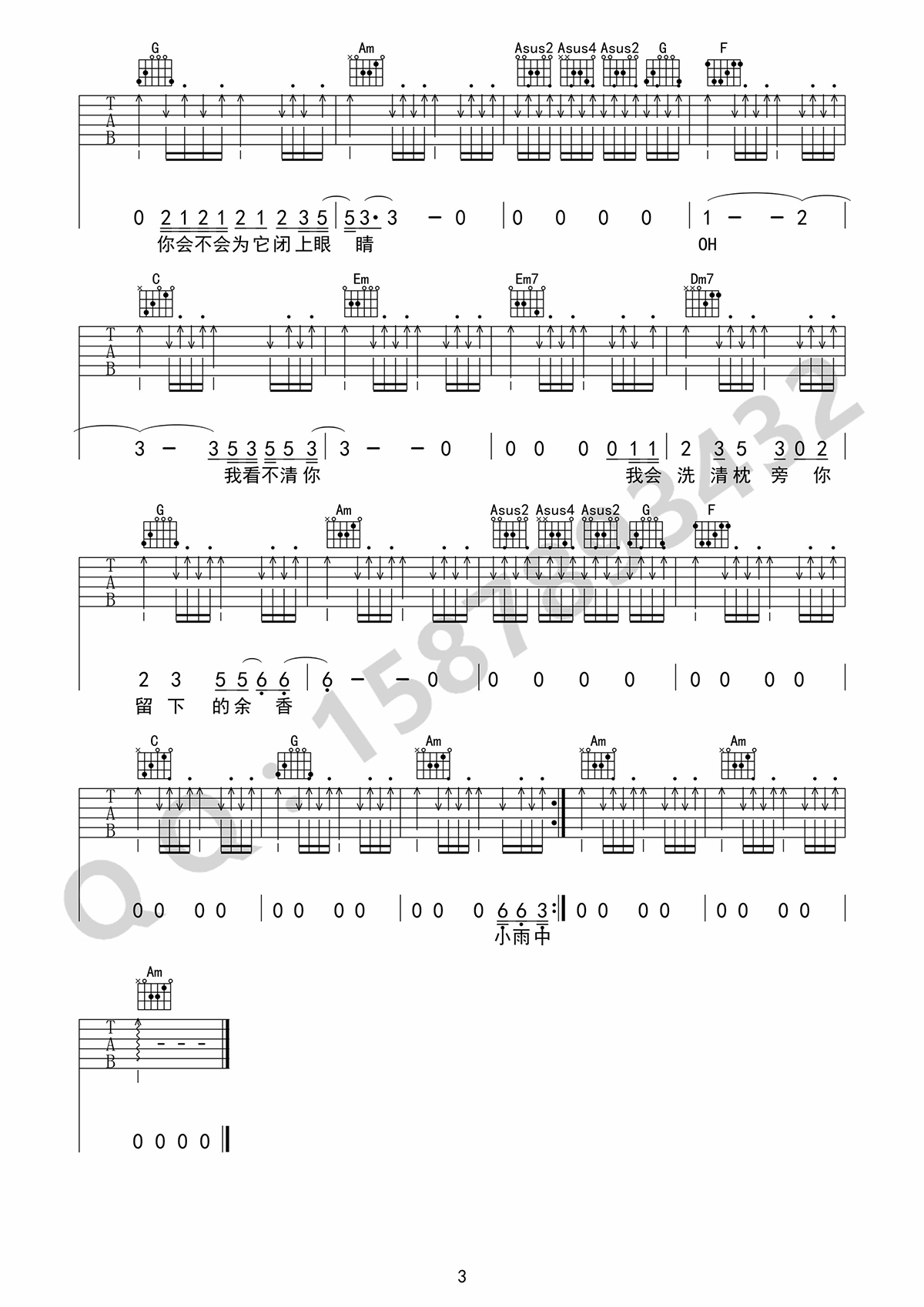 小雨中吉他谱-赵雷《小雨中》C调图片谱-原版弹唱谱