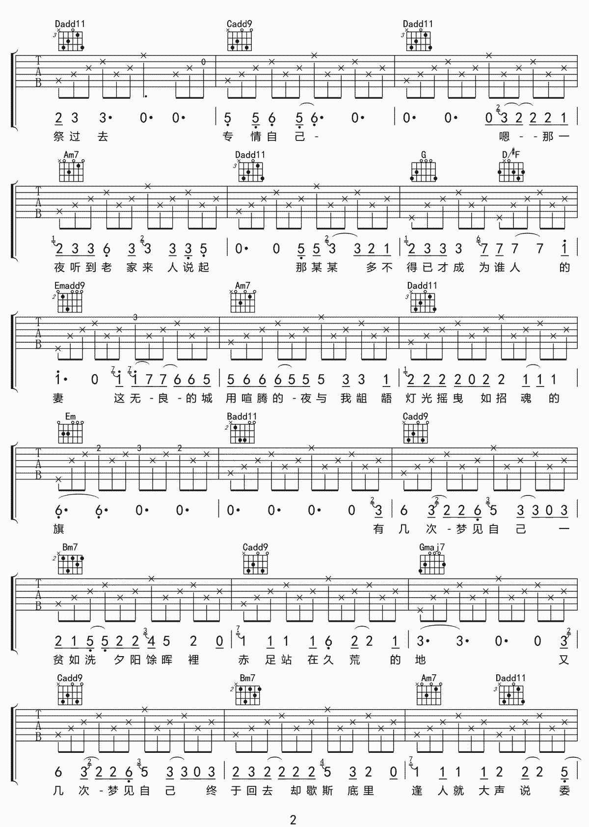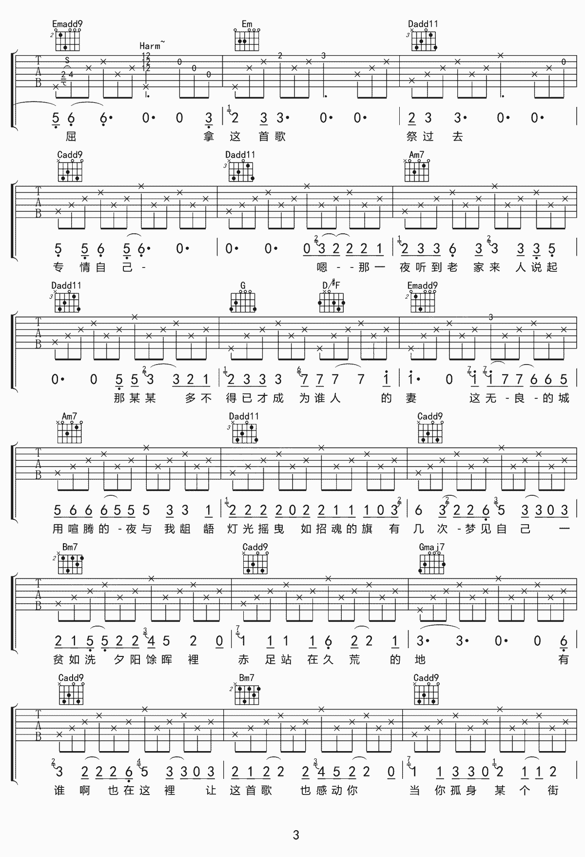 李剑青《平凡故事吉他谱》G调原版六线谱