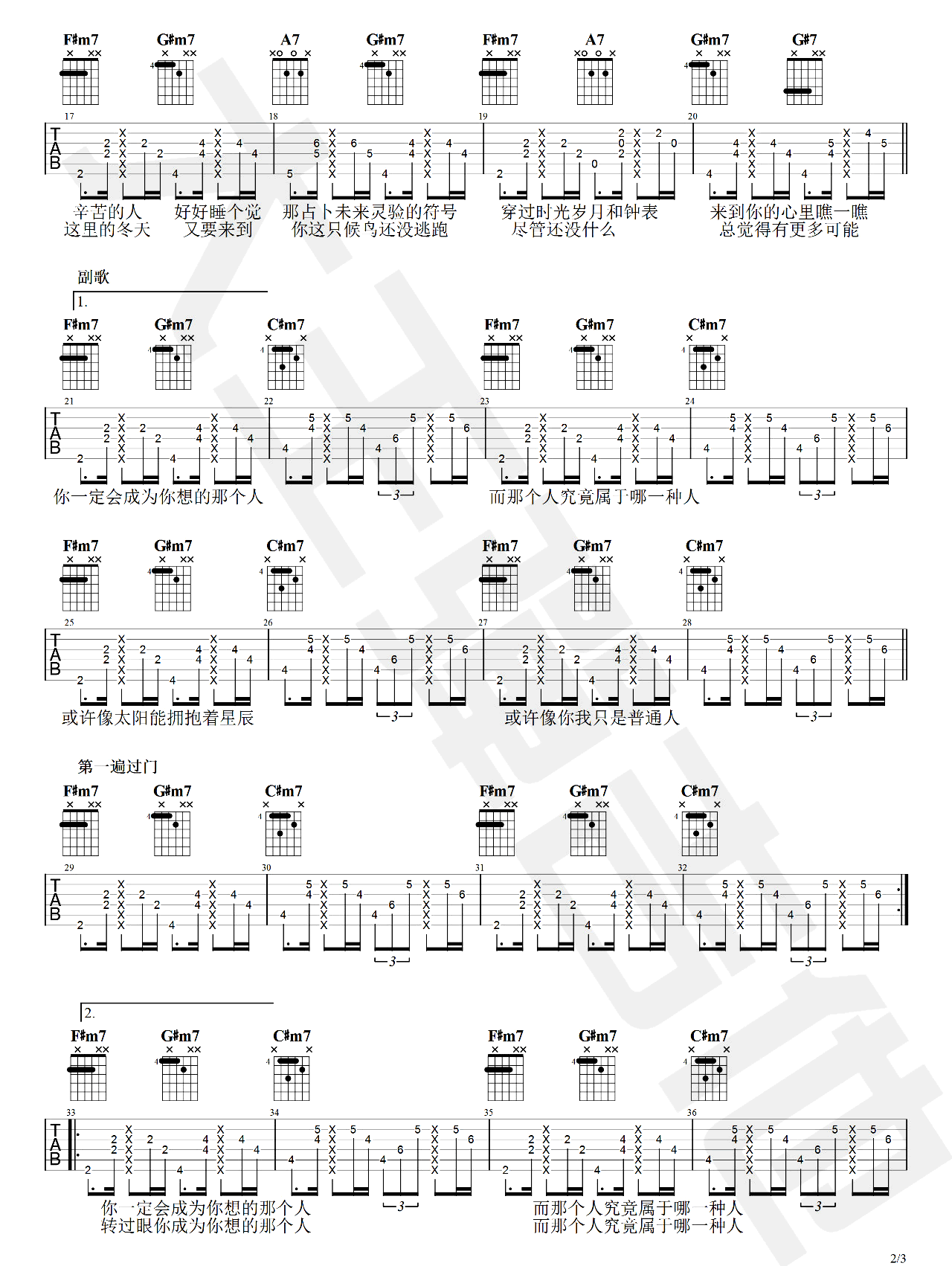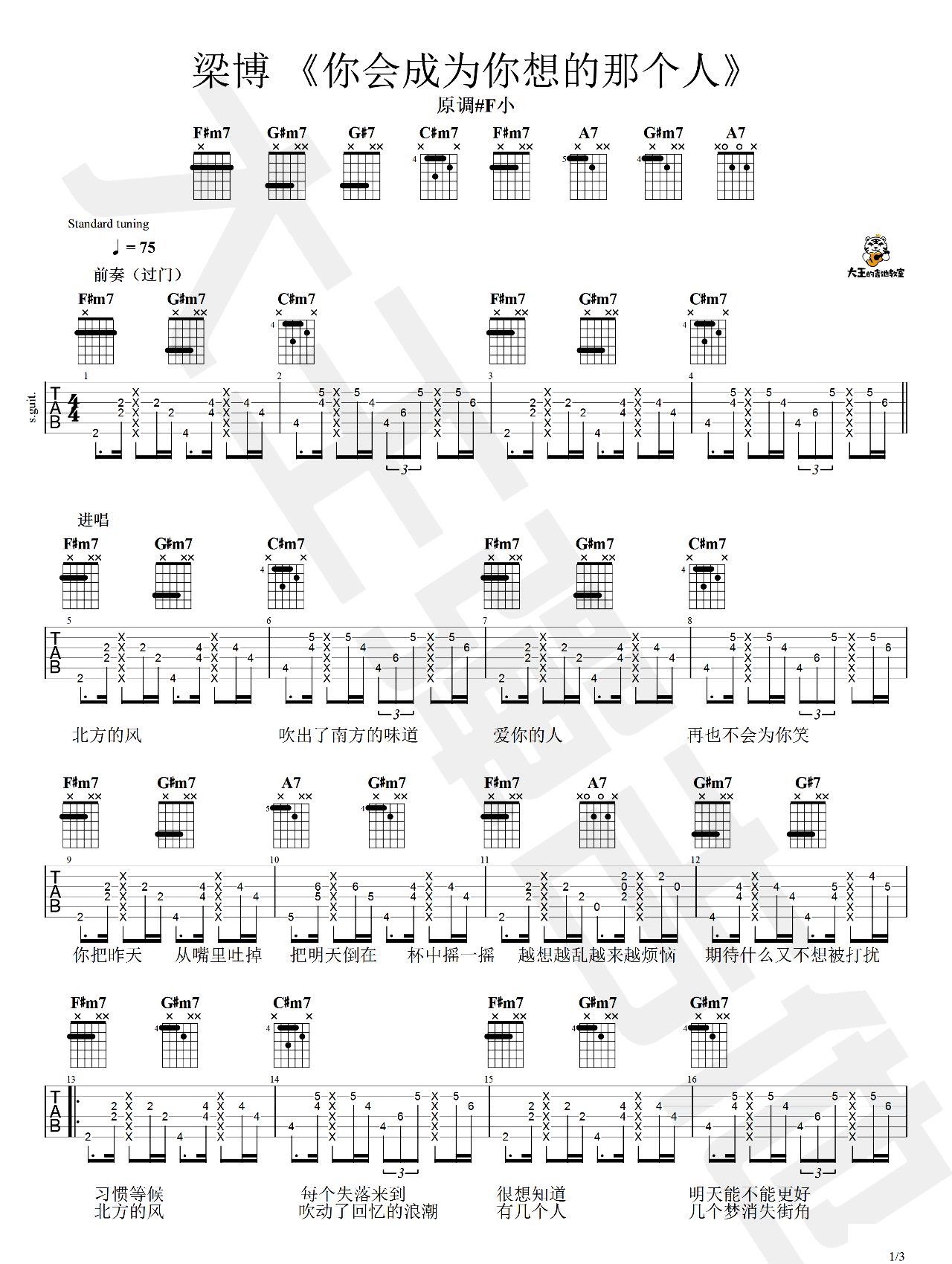 梁博《你会成为你想的那个人吉他谱》原版六线谱