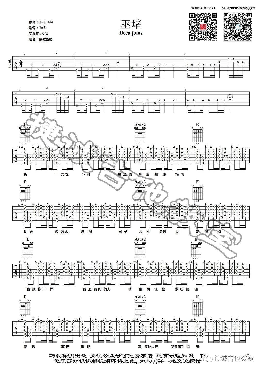 巫堵吉他谱-Deca Joins《巫堵》E调图片谱-原版弹唱谱