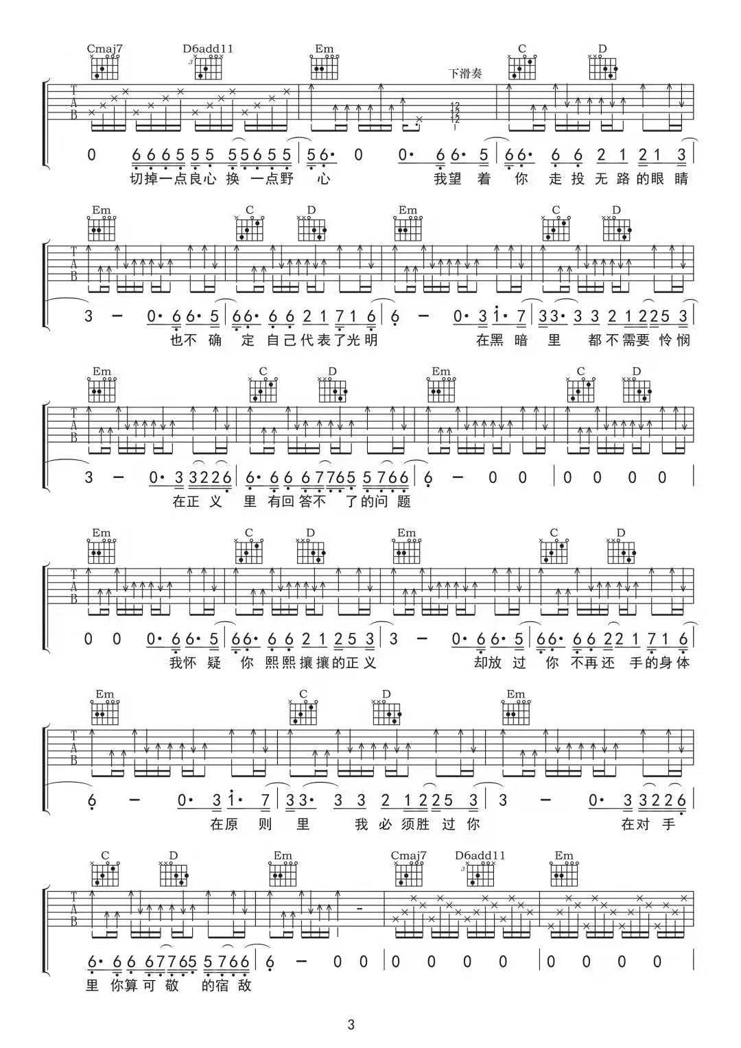 野心吉他谱-薛之谦《野心》C调图片谱-原版弹唱谱
