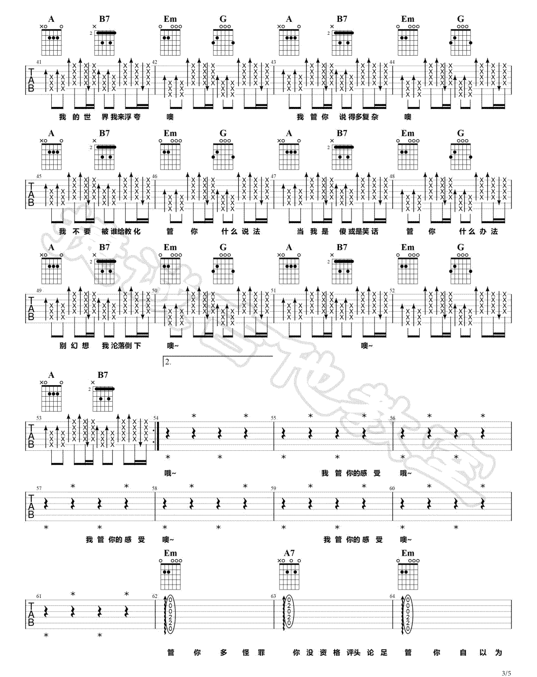 我管你吉他谱G调-华晨宇《我管你》弹唱六线谱-完整原版