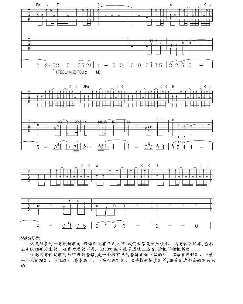 you&me吉他谱-羽泉-A调原版六线谱-高清弹唱谱