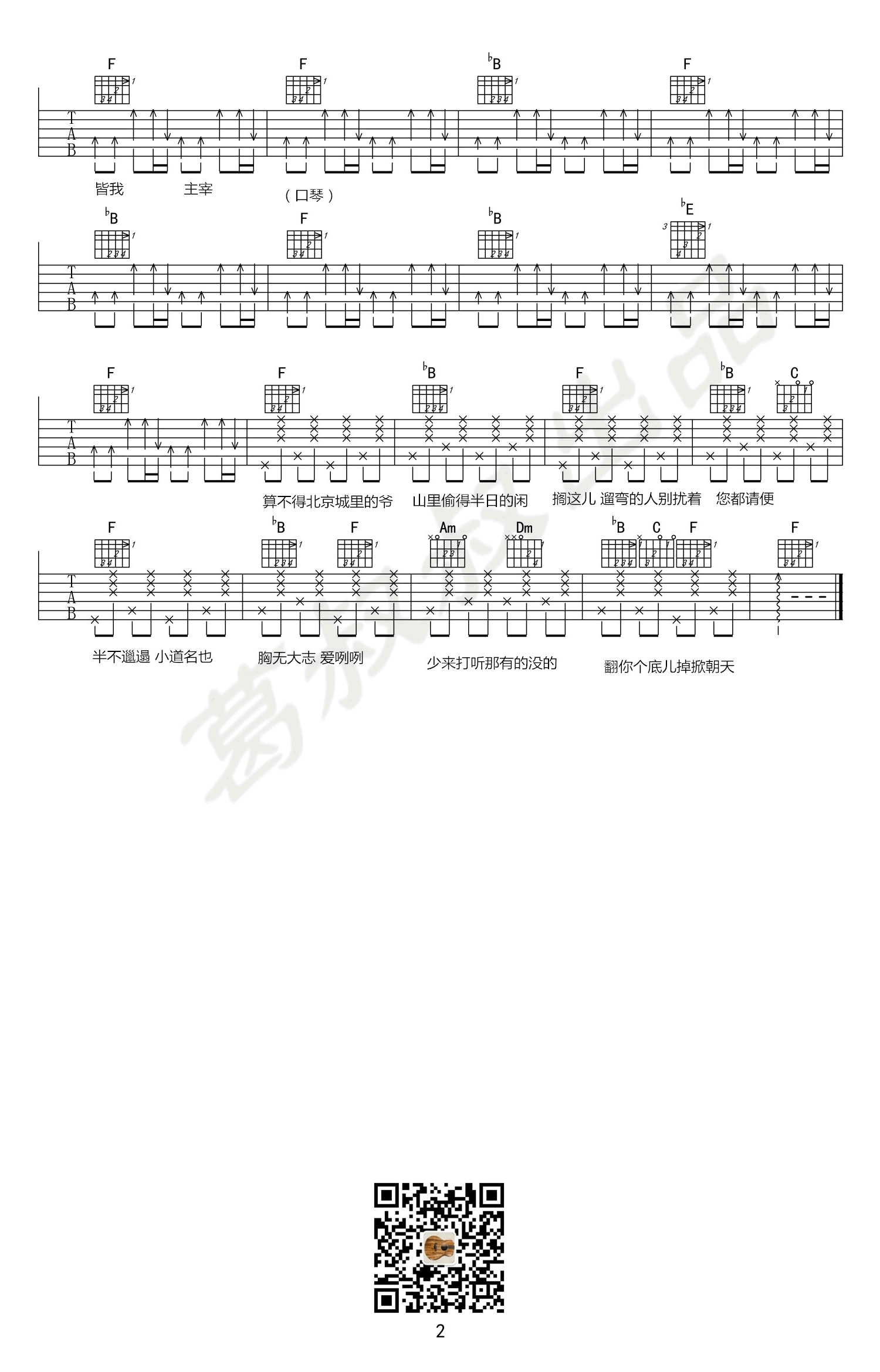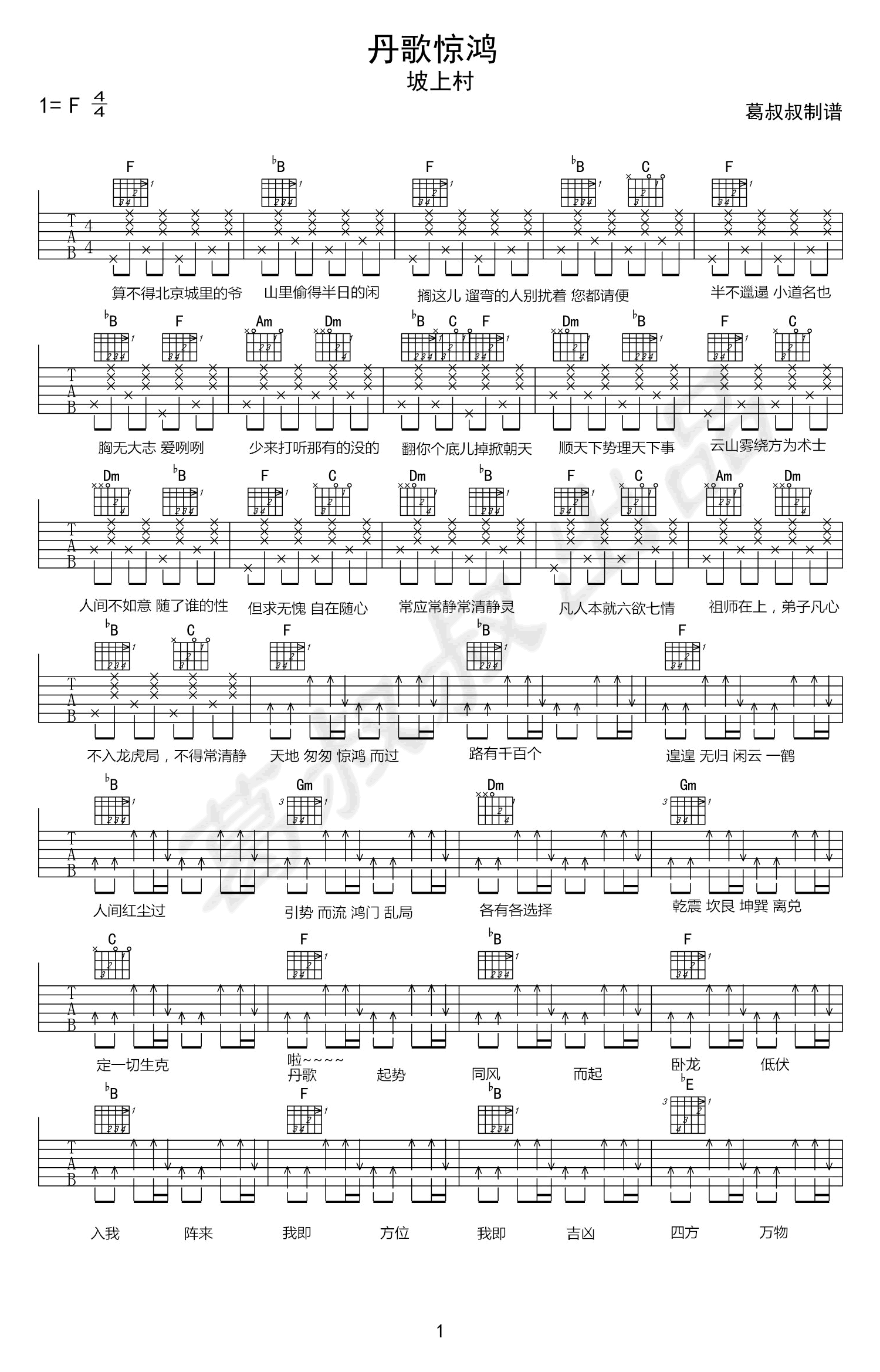 丹歌惊鸿吉他谱-坡上村-F调弹唱六线谱-高清图片谱
