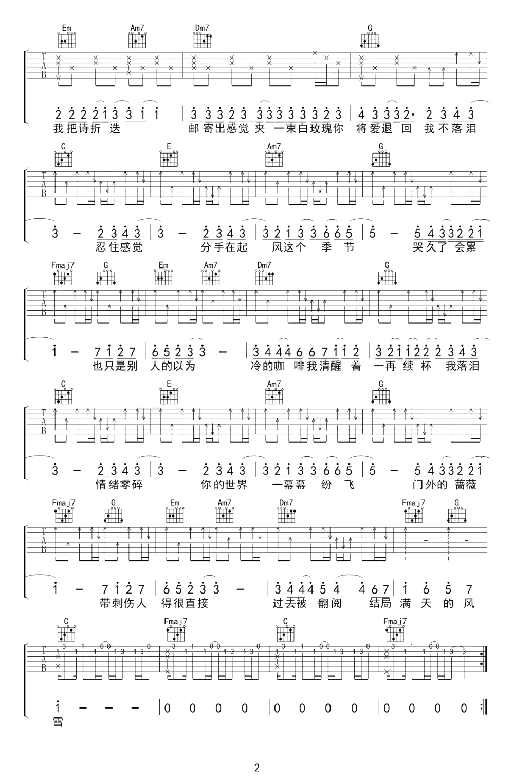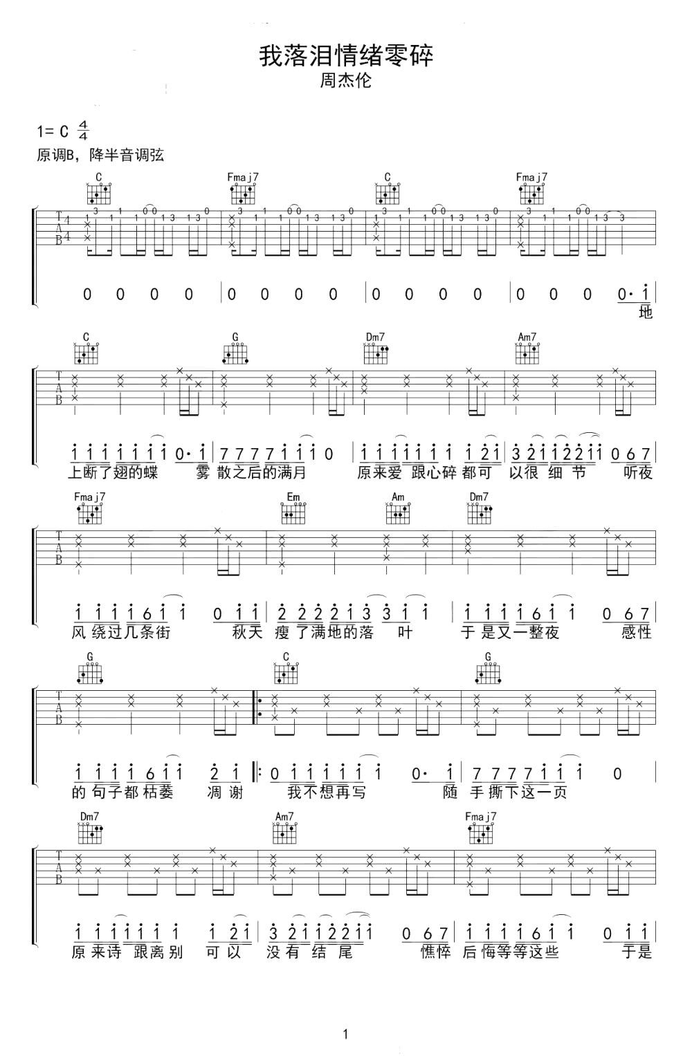 周杰伦《我落泪情绪零碎吉他谱》C调原版弹唱谱