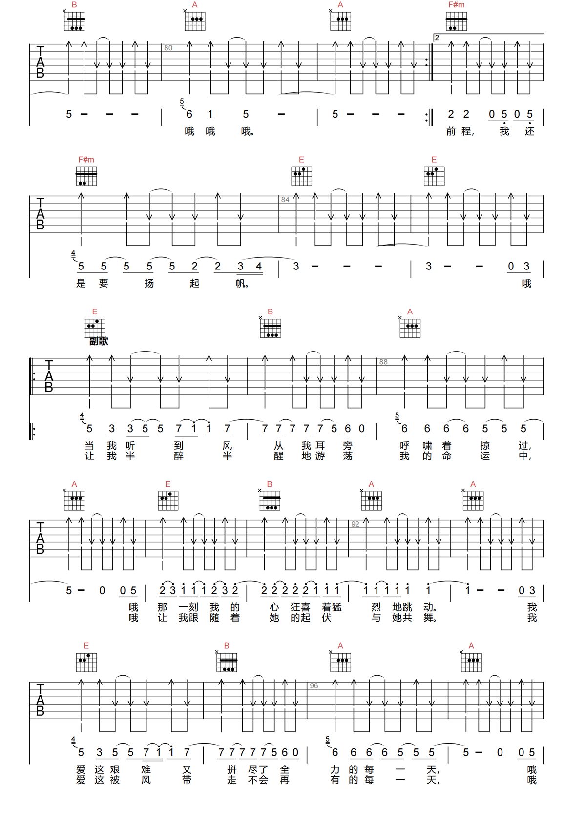 空帆船吉他谱-朴树《空帆船》E调图片谱-原版六线谱