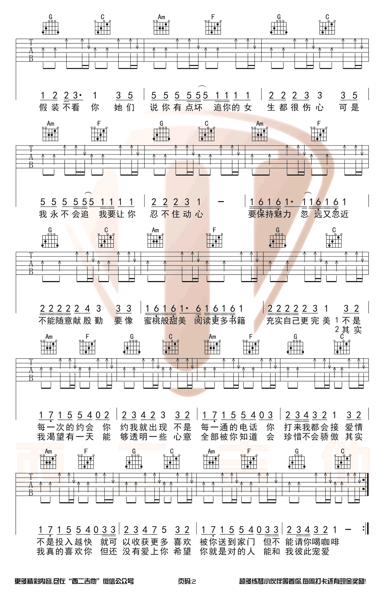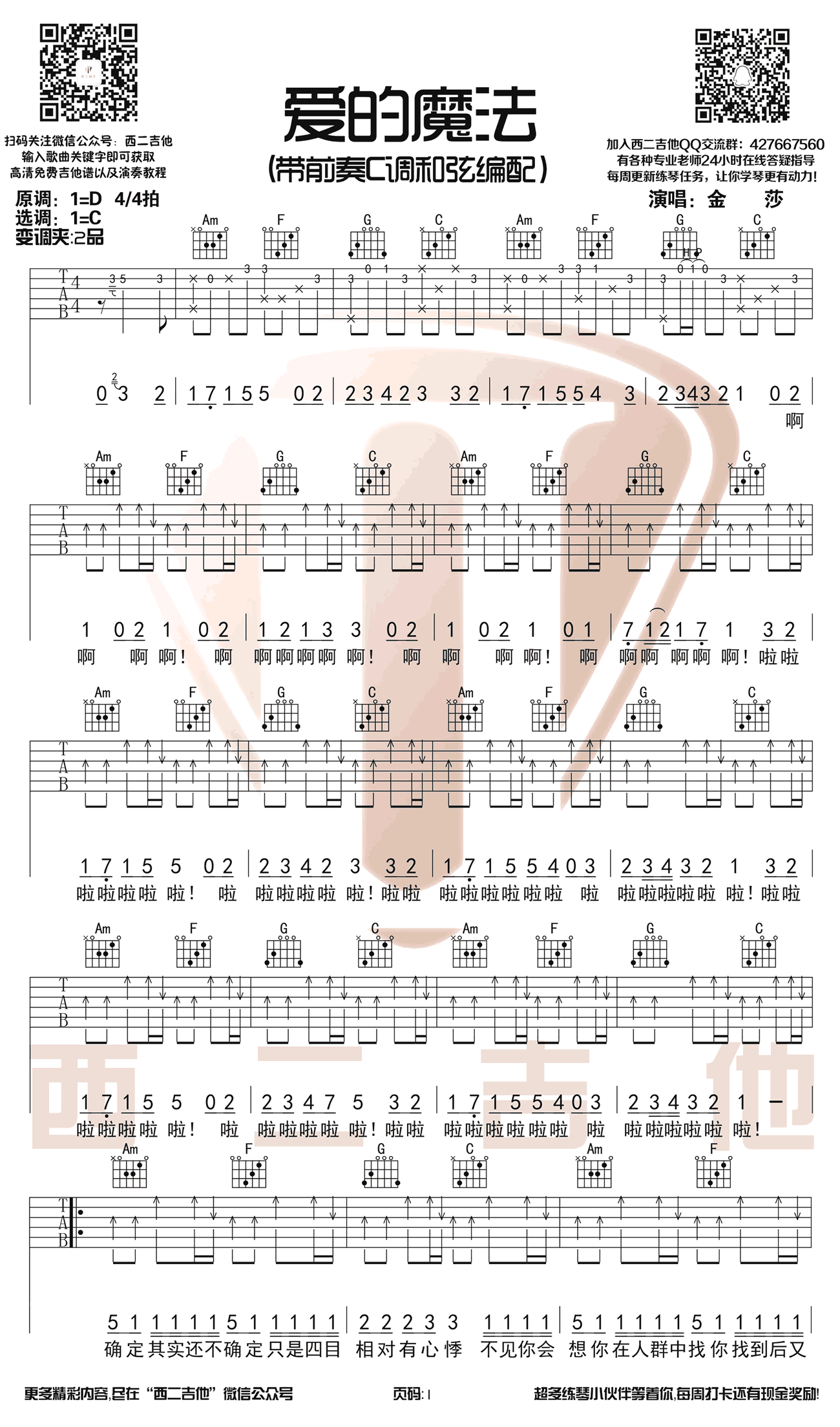 金莎《爱的魔法吉他谱》C调原版图谱