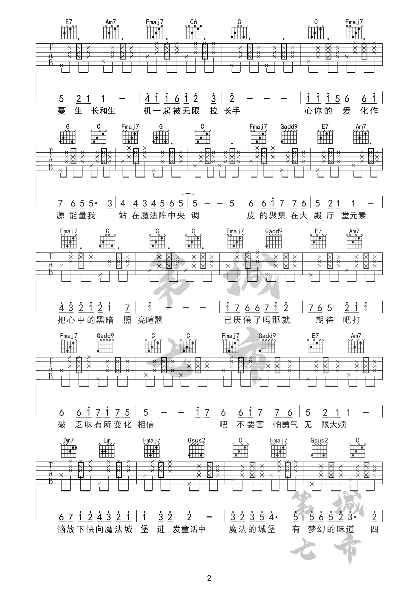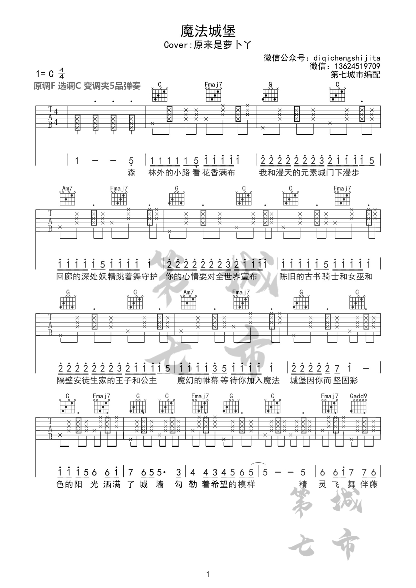 魔法城堡吉他谱C调-原来是萝卜丫-原版弹唱六线谱