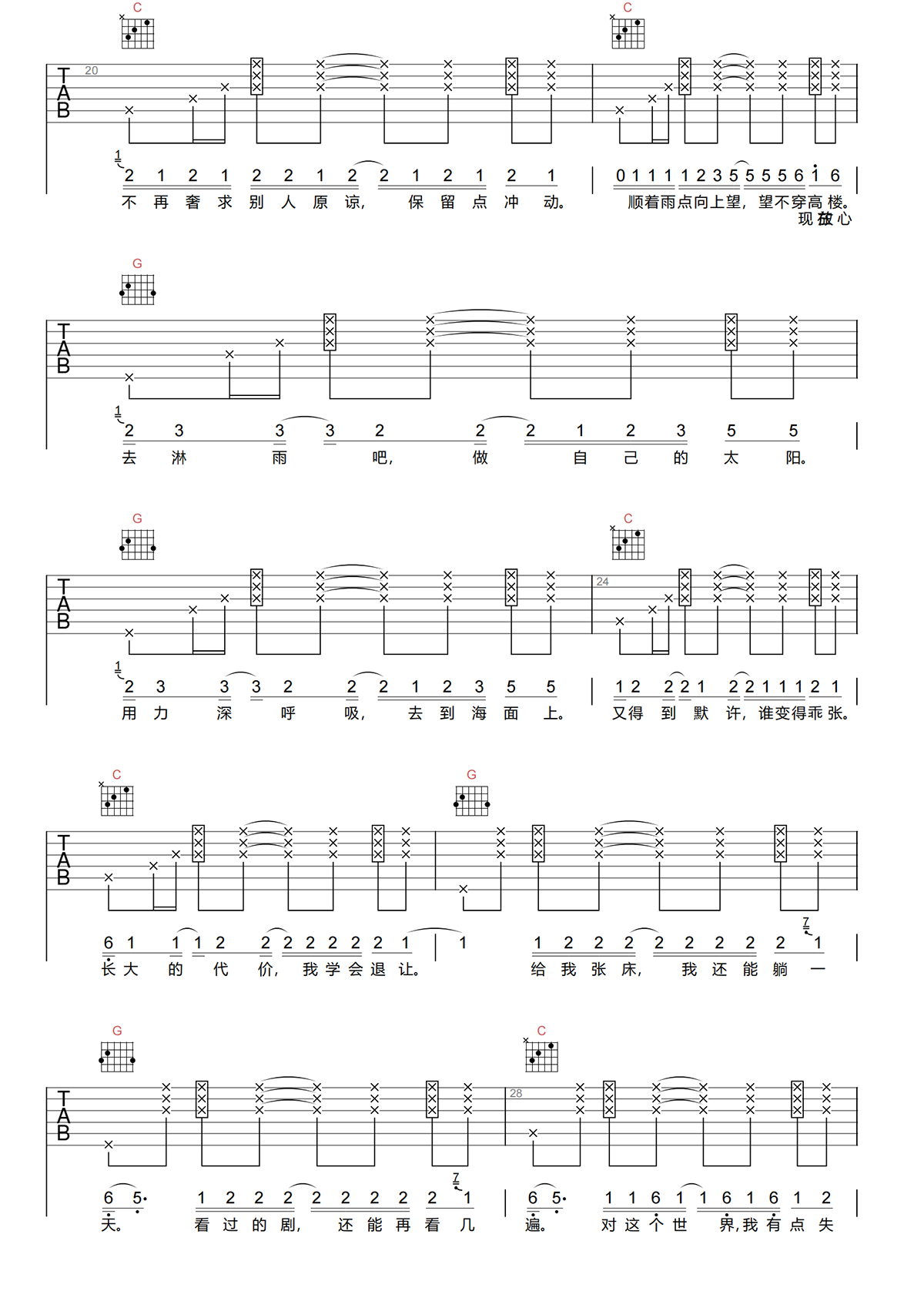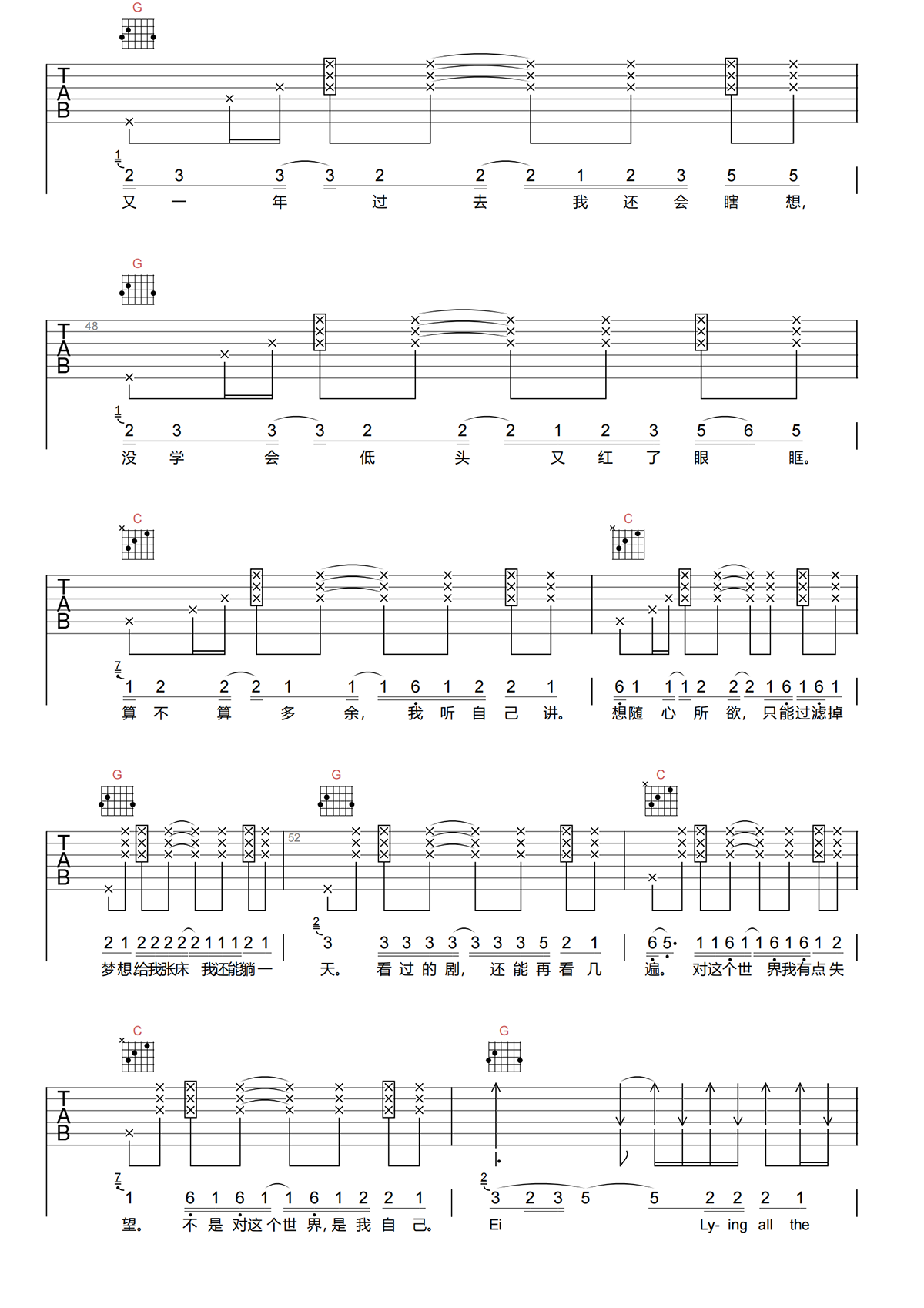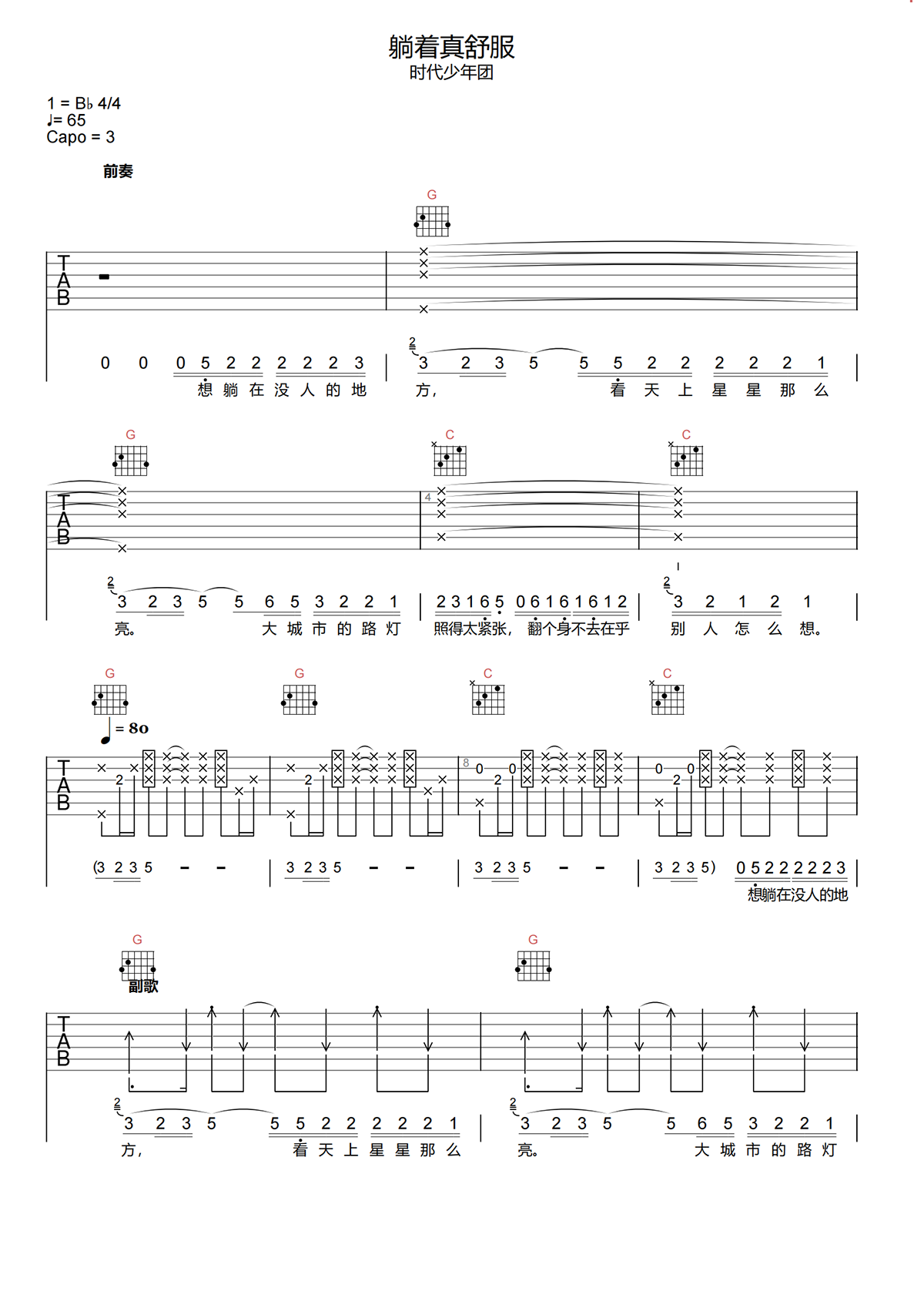 时代少年团《躺着真舒服吉他谱》G调原版六线谱
