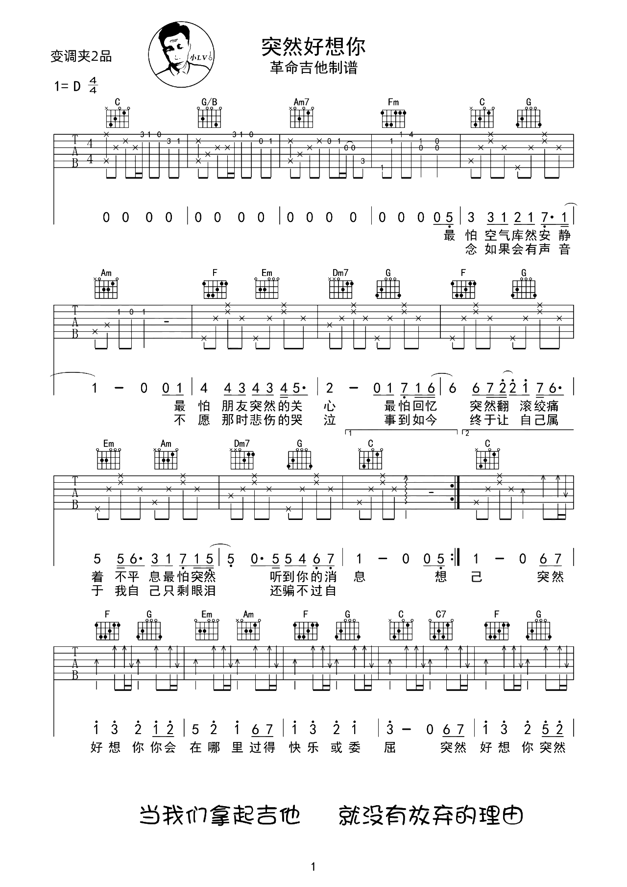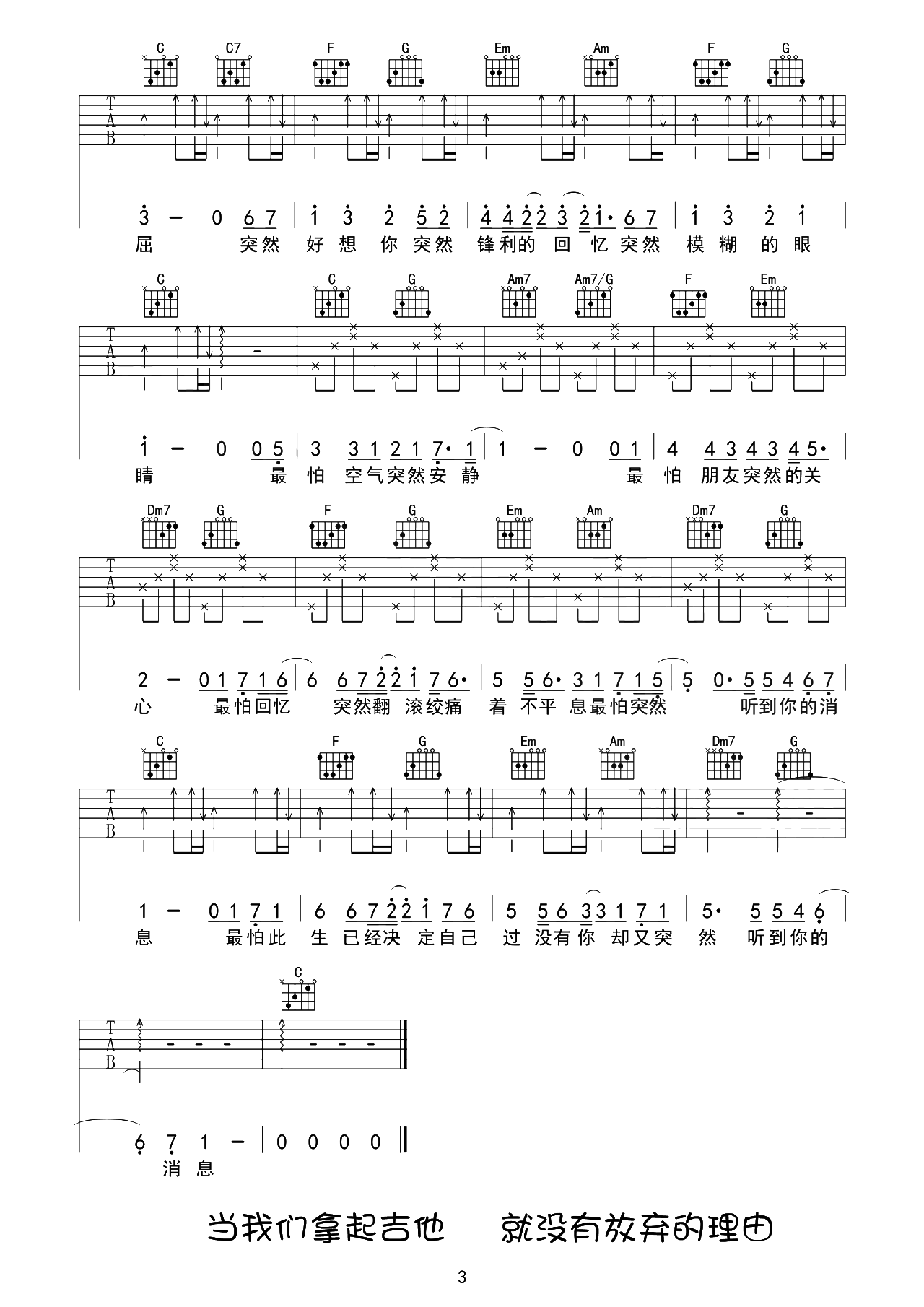 突然好想你吉他谱C调-五月天-原版六线谱-含教学示范