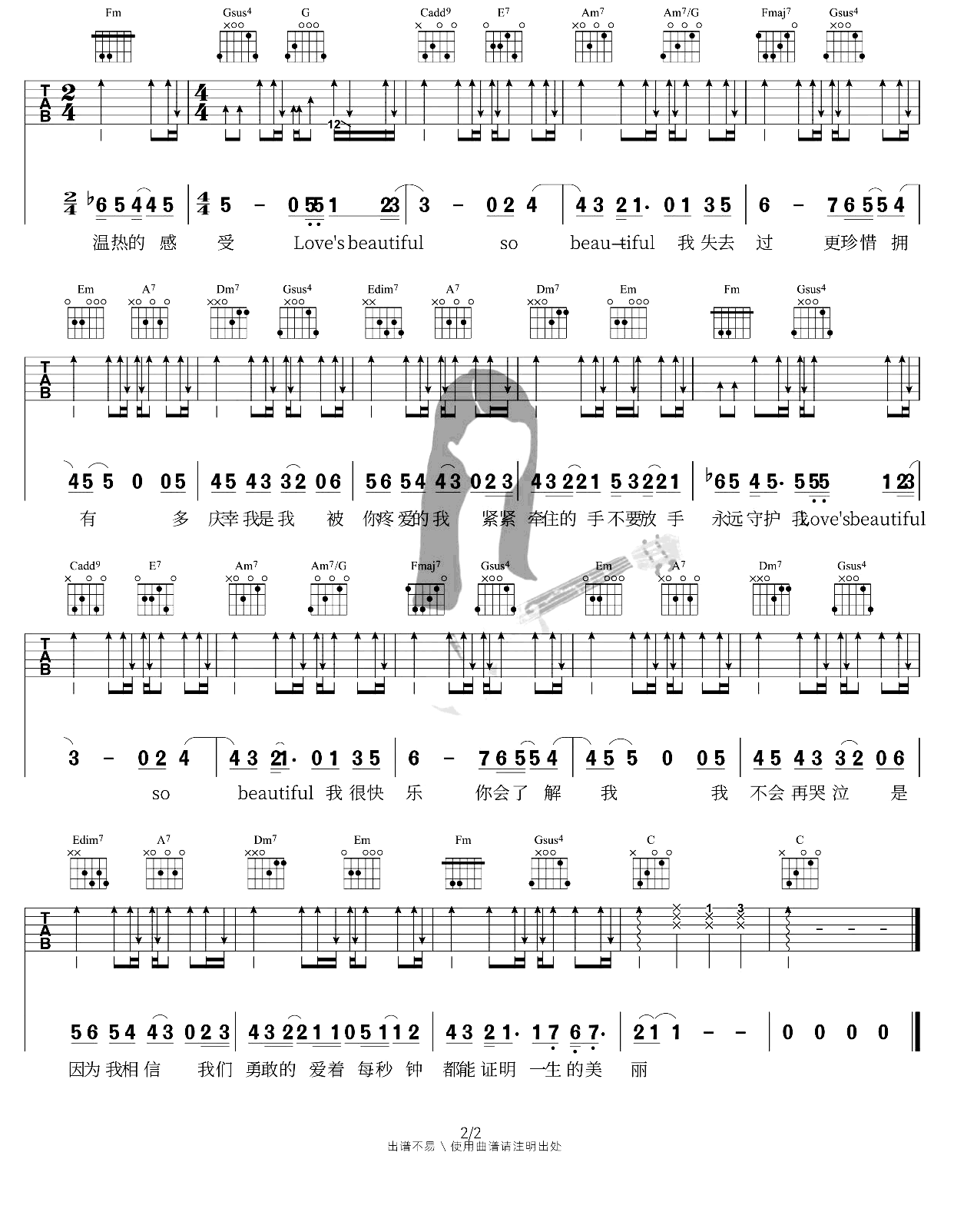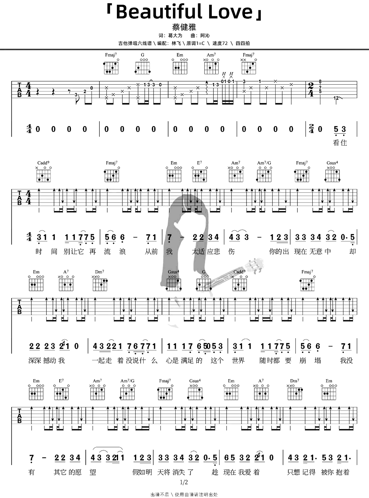Beautiful love吉他谱C调-蔡健雅-原版六线谱-含教学示范