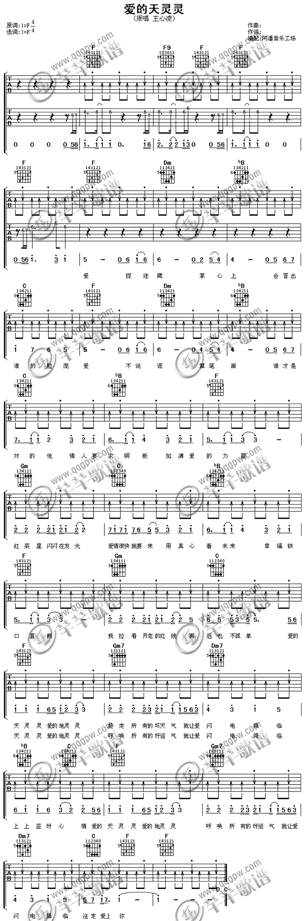 王心凌《爱的天灵灵吉他谱》F调弹唱六线谱