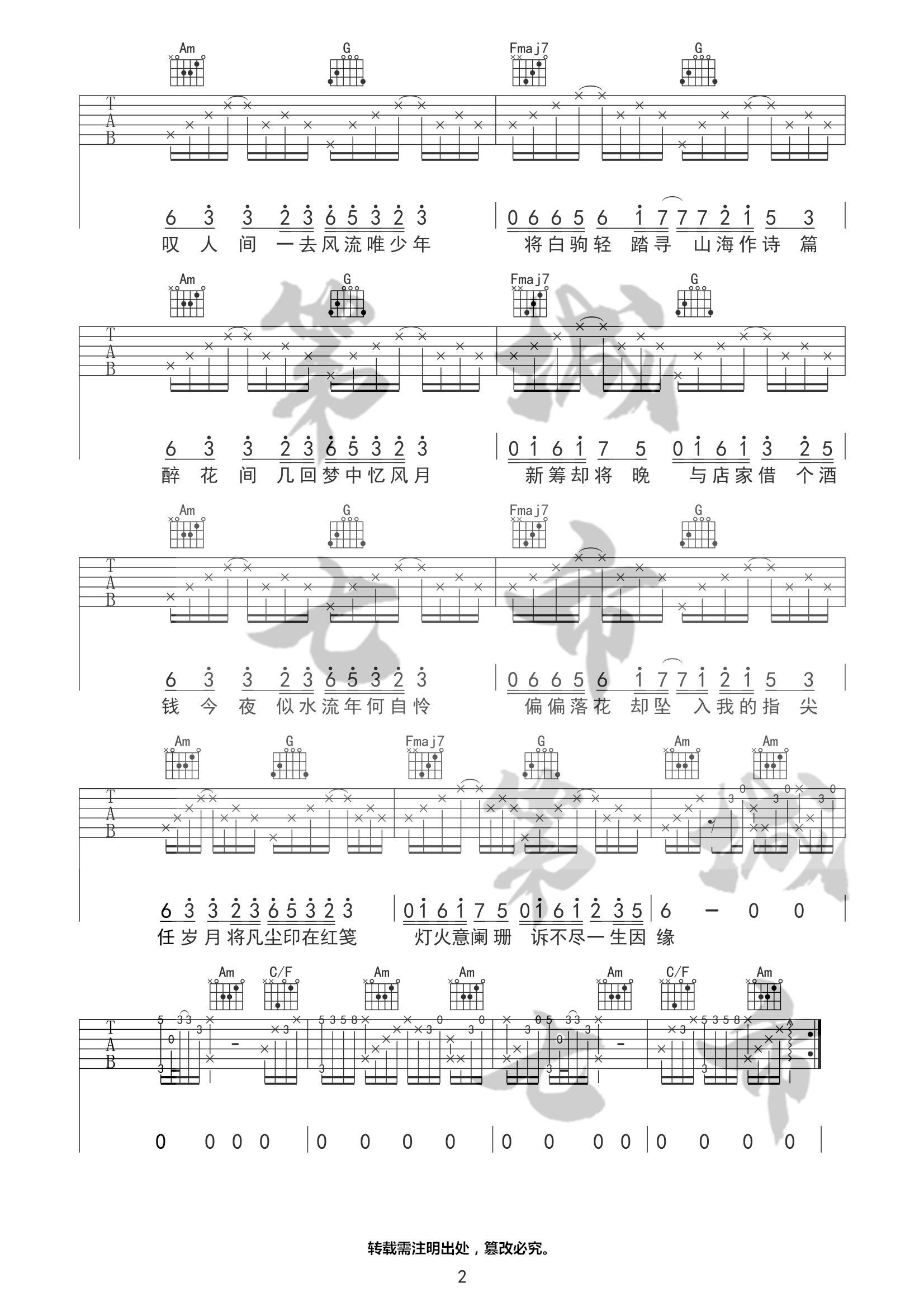 叶里《人间惊鸿客吉他谱》C调弹唱六线谱