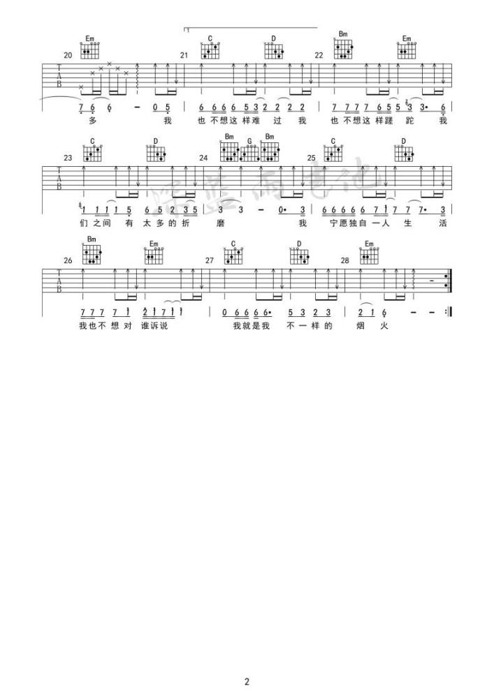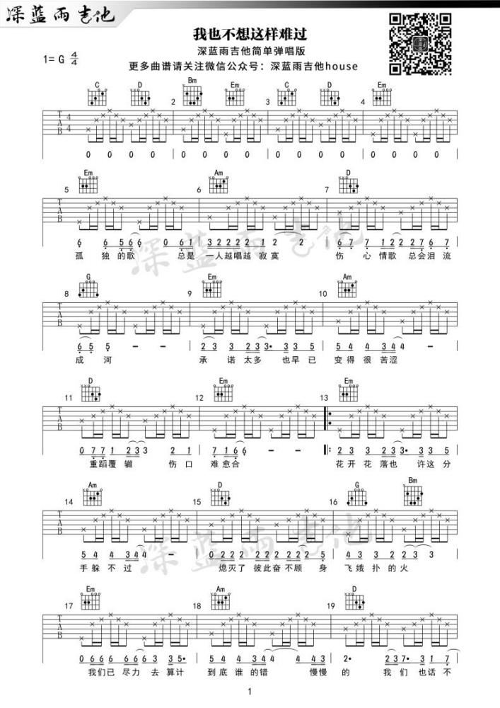 南建雄《我也不想这样难过吉他谱》G调原版六线谱
