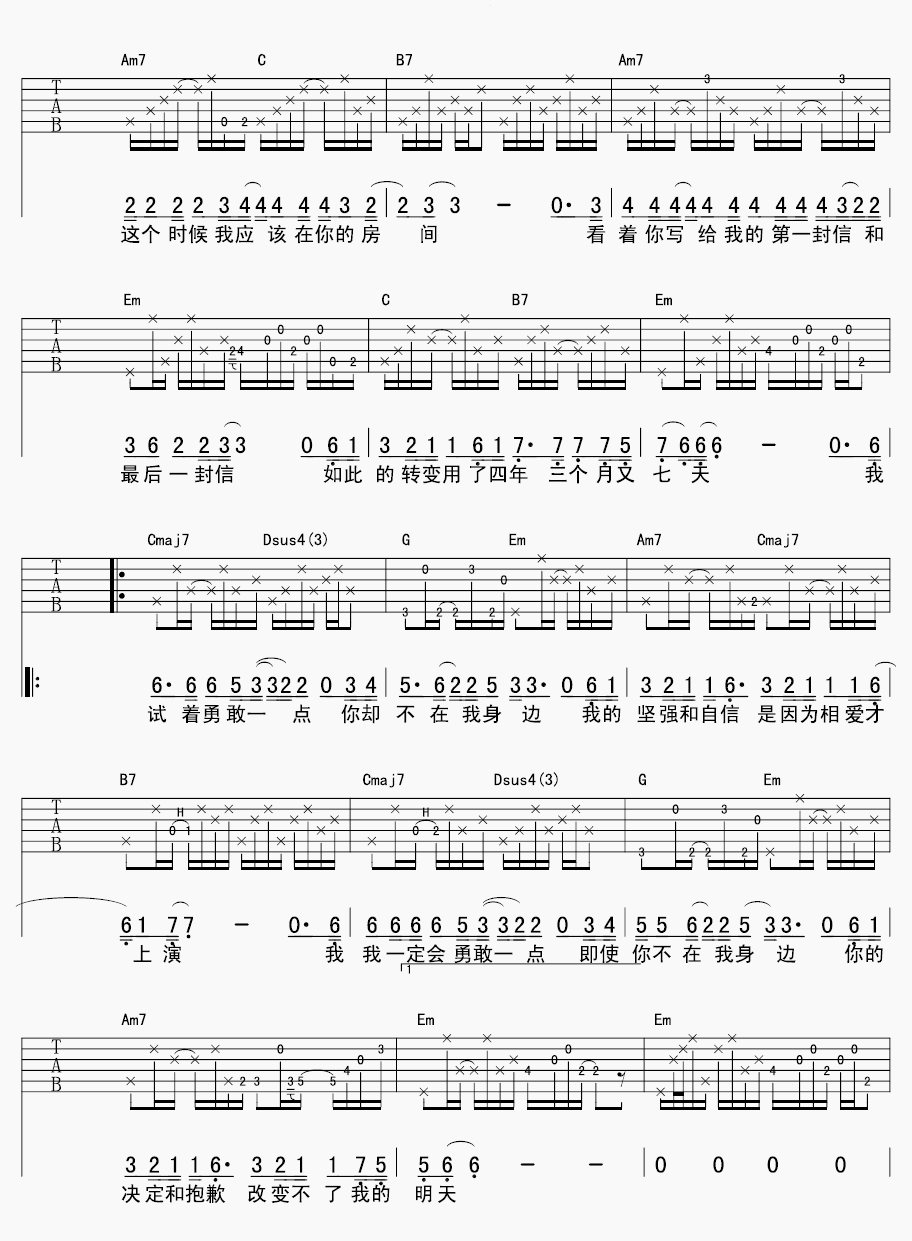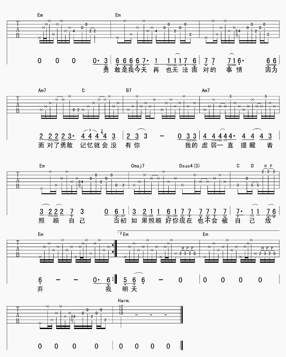 袁惟仁《勇敢一点吉他谱》G调原版六线谱