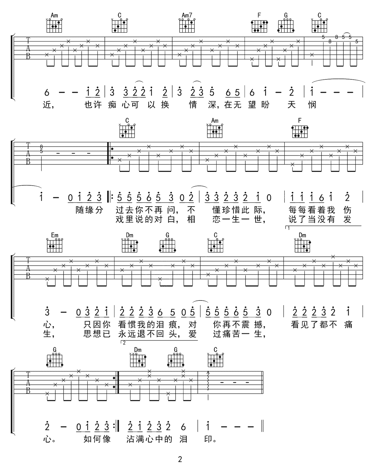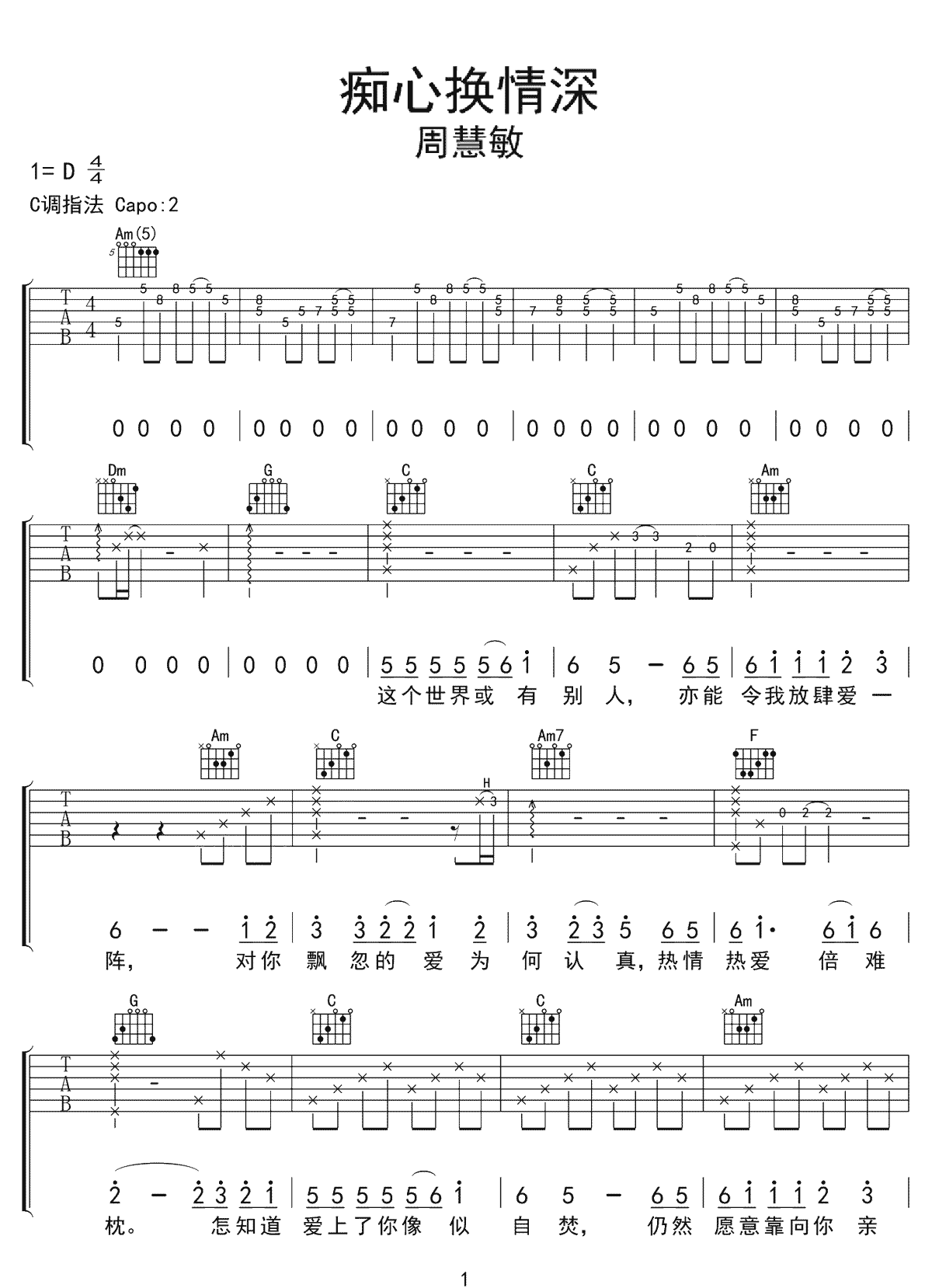 周慧敏《痴心换情深吉他谱》G调原版图谱