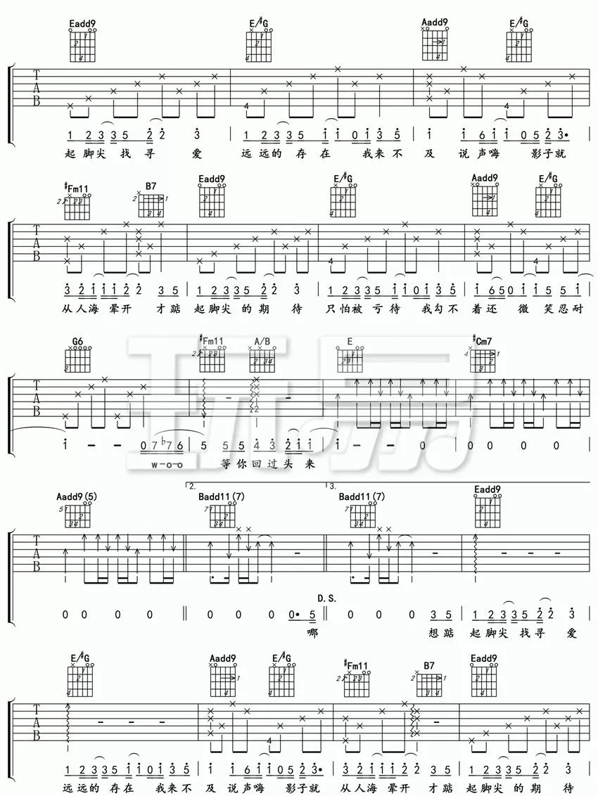 洪佩瑜《踮起脚尖爱吉他谱》E调原版图谱