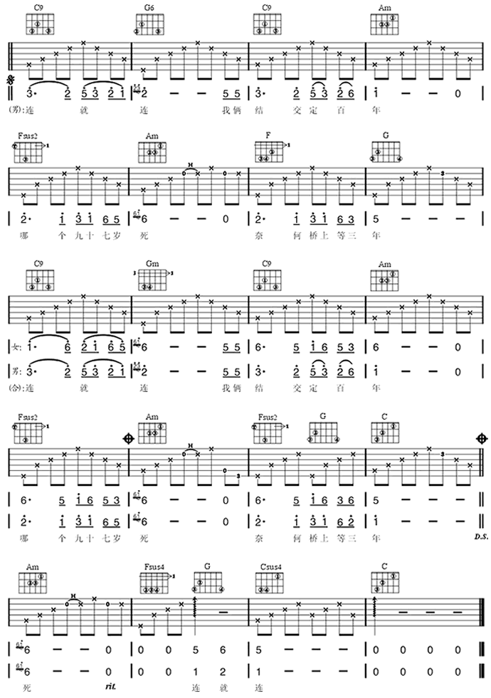 藤缠树吉他谱-齐秦/齐豫-F调弹唱六线谱