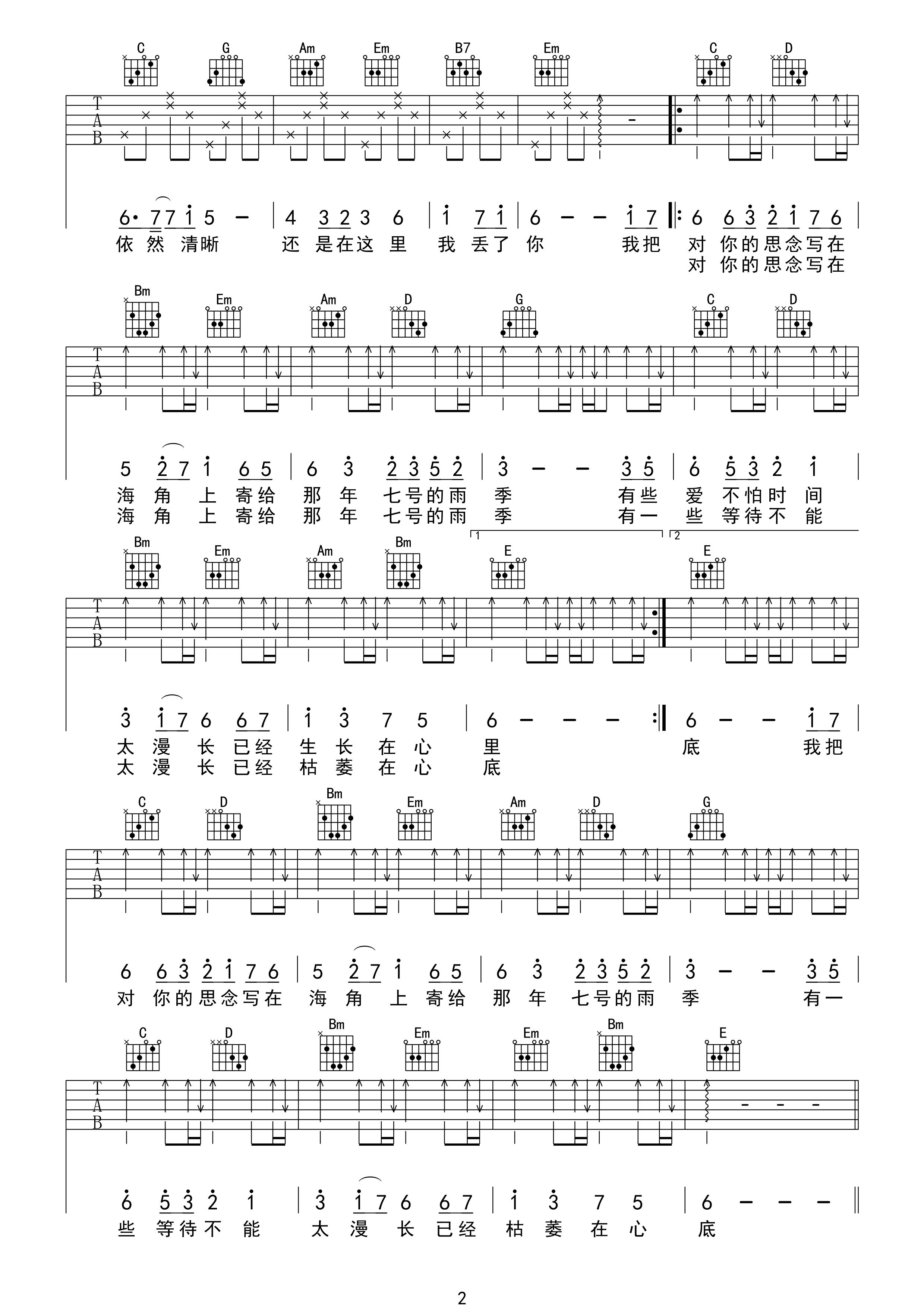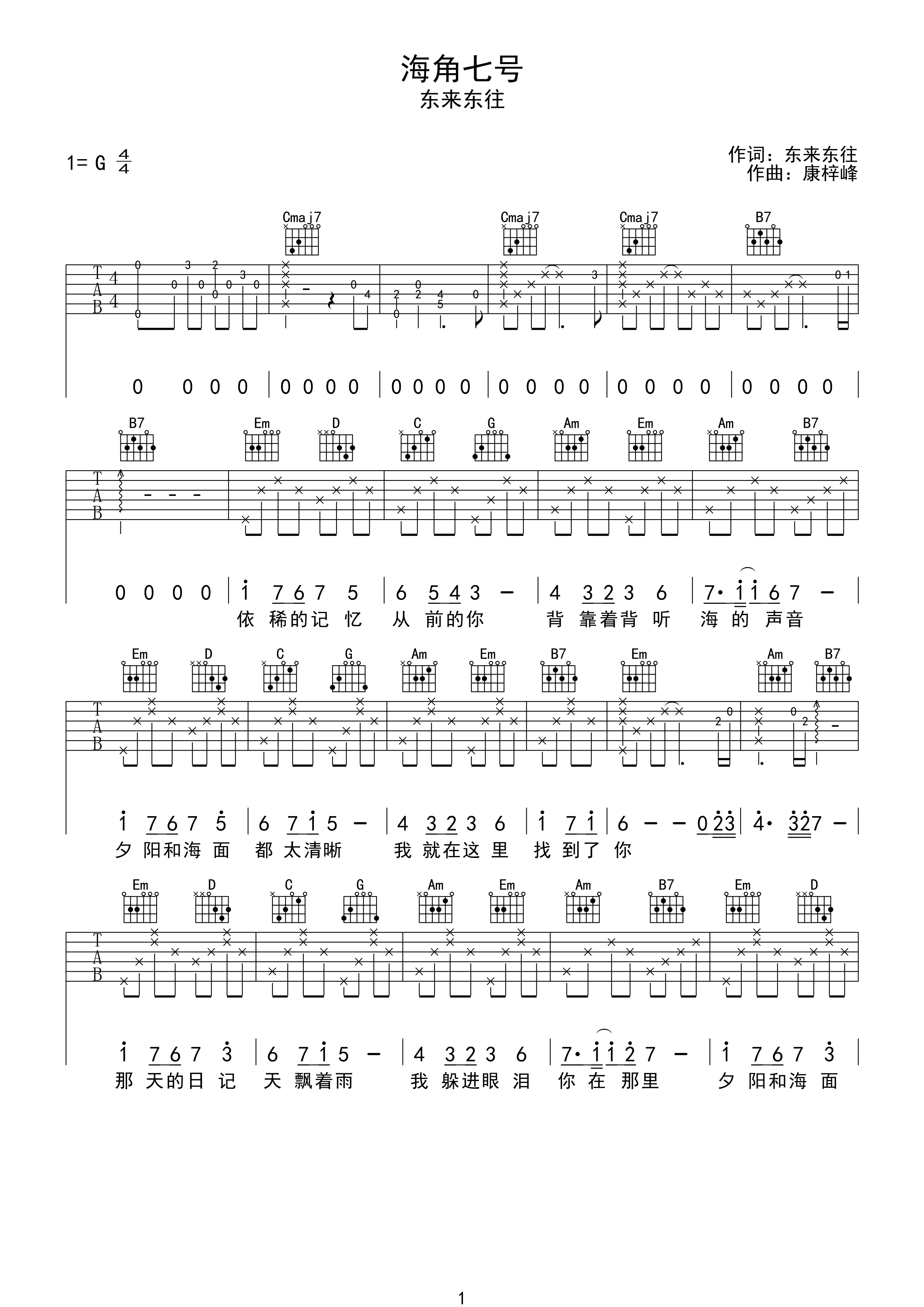 东来东往《海角七号吉他谱》G调原版弹唱谱