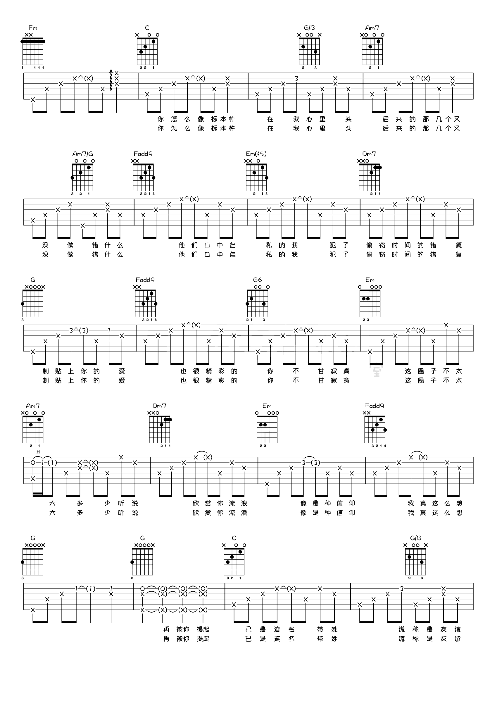 连名带姓吉他谱C调-张惠妹-弹唱六线谱