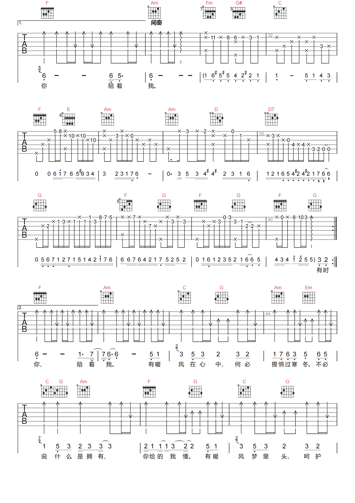 暖风吉他谱-周传雄《暖风》C调图片谱-原版弹唱谱