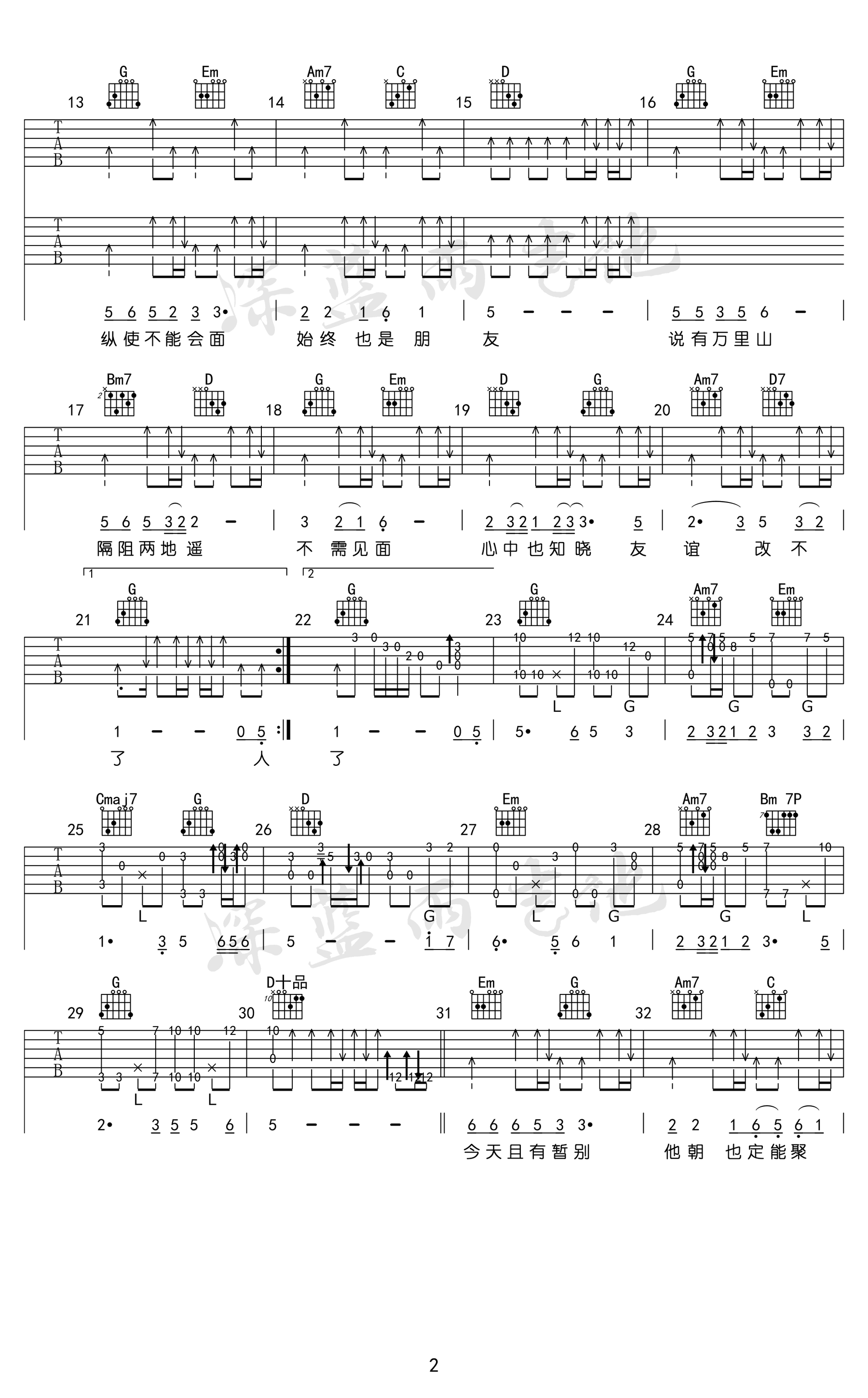 友谊之光吉他谱-周润发-G调原版弹唱谱-监狱风云插曲