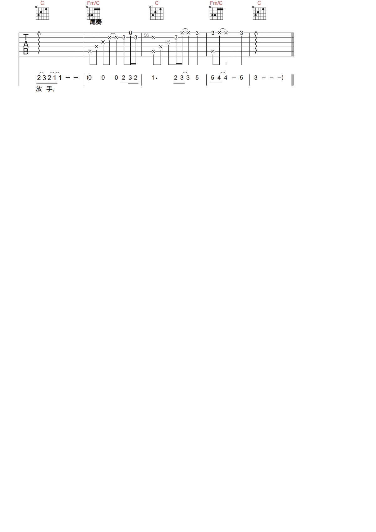 齐秦《这一次我绝不放手吉他谱》C调原版弹唱谱