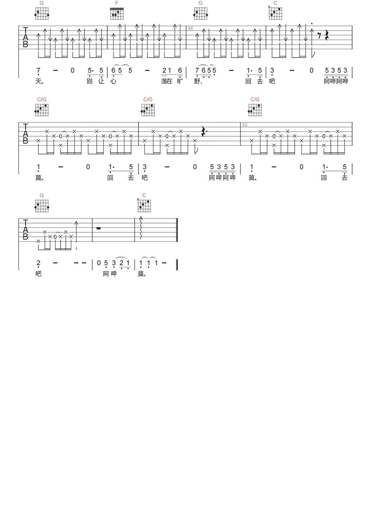 阿呷莫吉他谱-奥杰阿格《阿呷莫》C调图片谱-原版弹唱谱