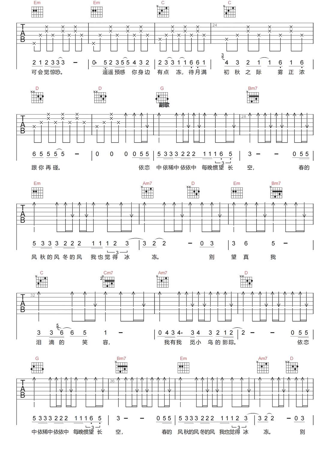 刘德华《绝望的笑容吉他谱》G调高清原版图谱