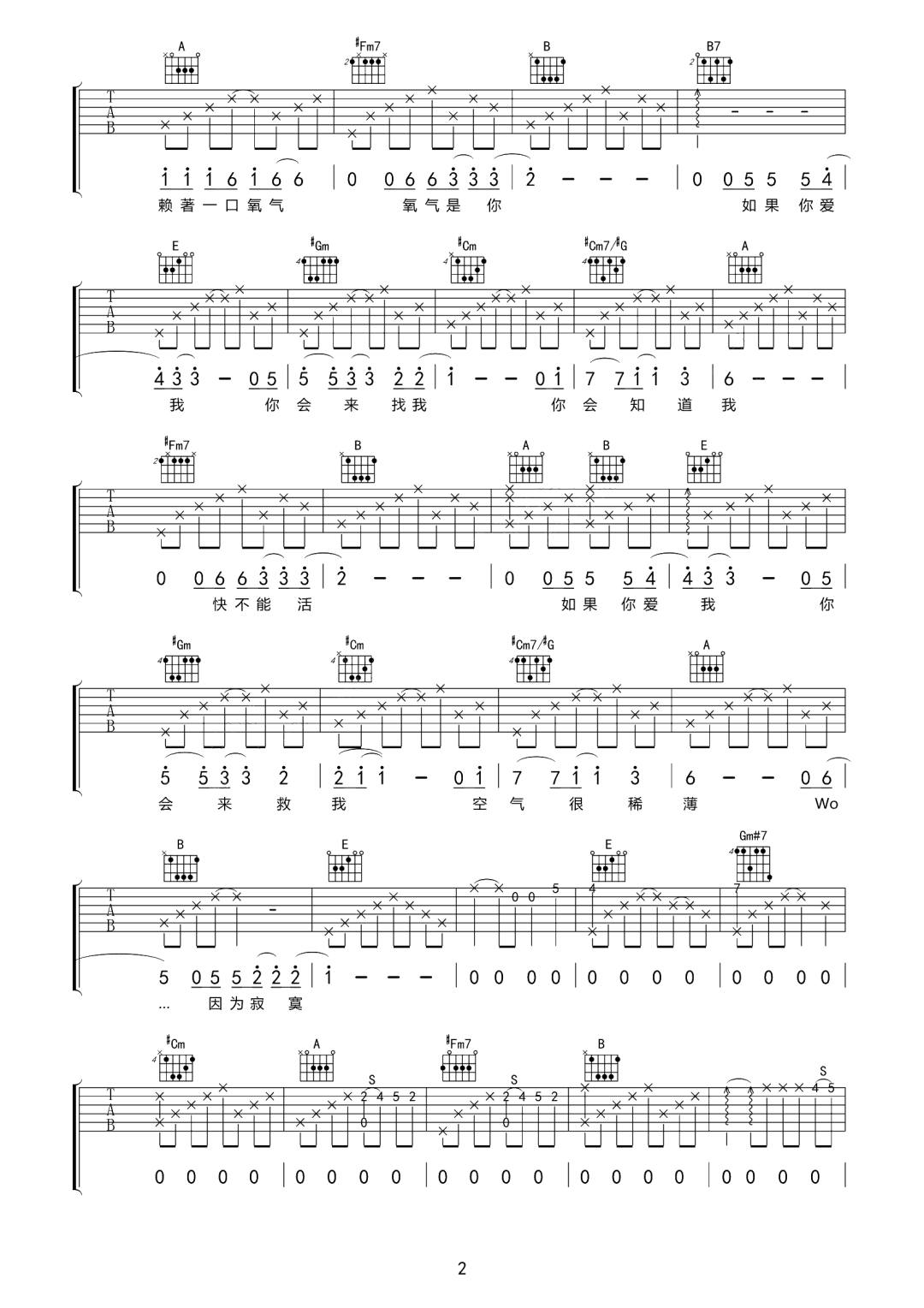 氧气吉他谱E调-范晓萱《氧气》图片谱-原版六线谱