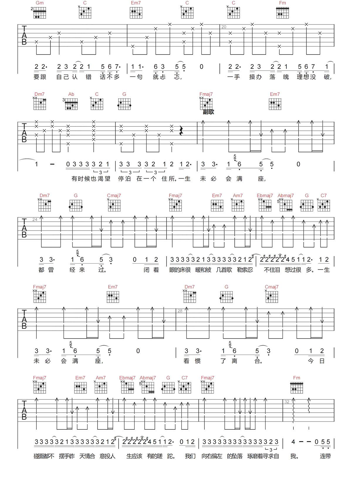 满座吉他谱-李荣浩《满座》C调图片谱-原版弹唱谱