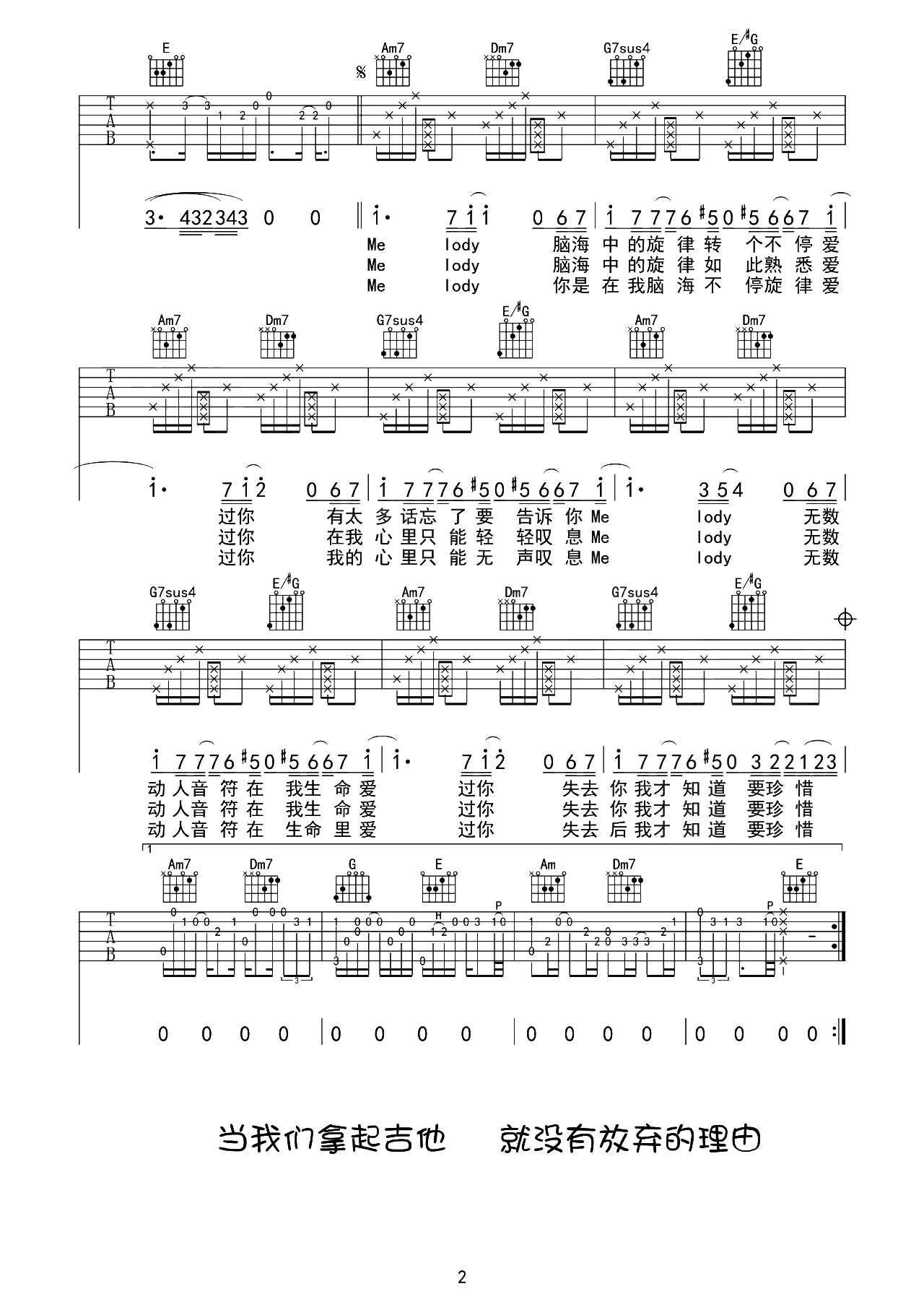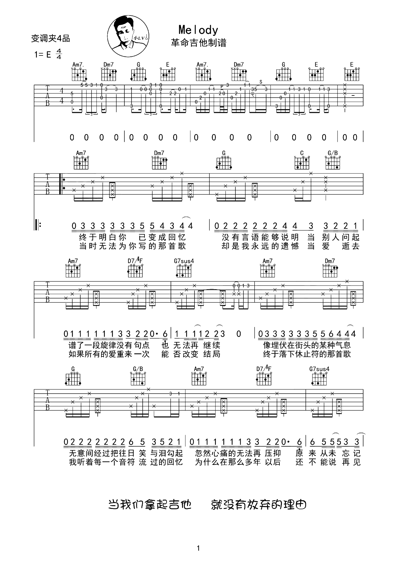Melody吉他谱-陶喆-C调原版六线谱-弹唱教学视频