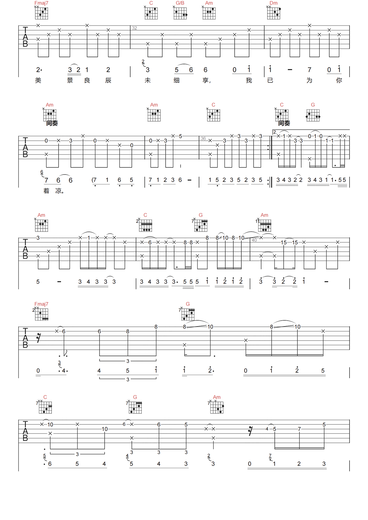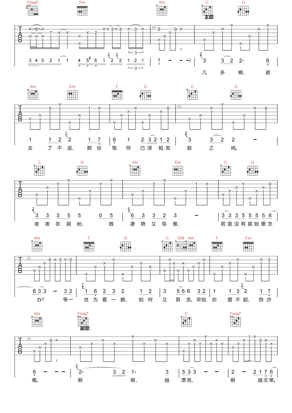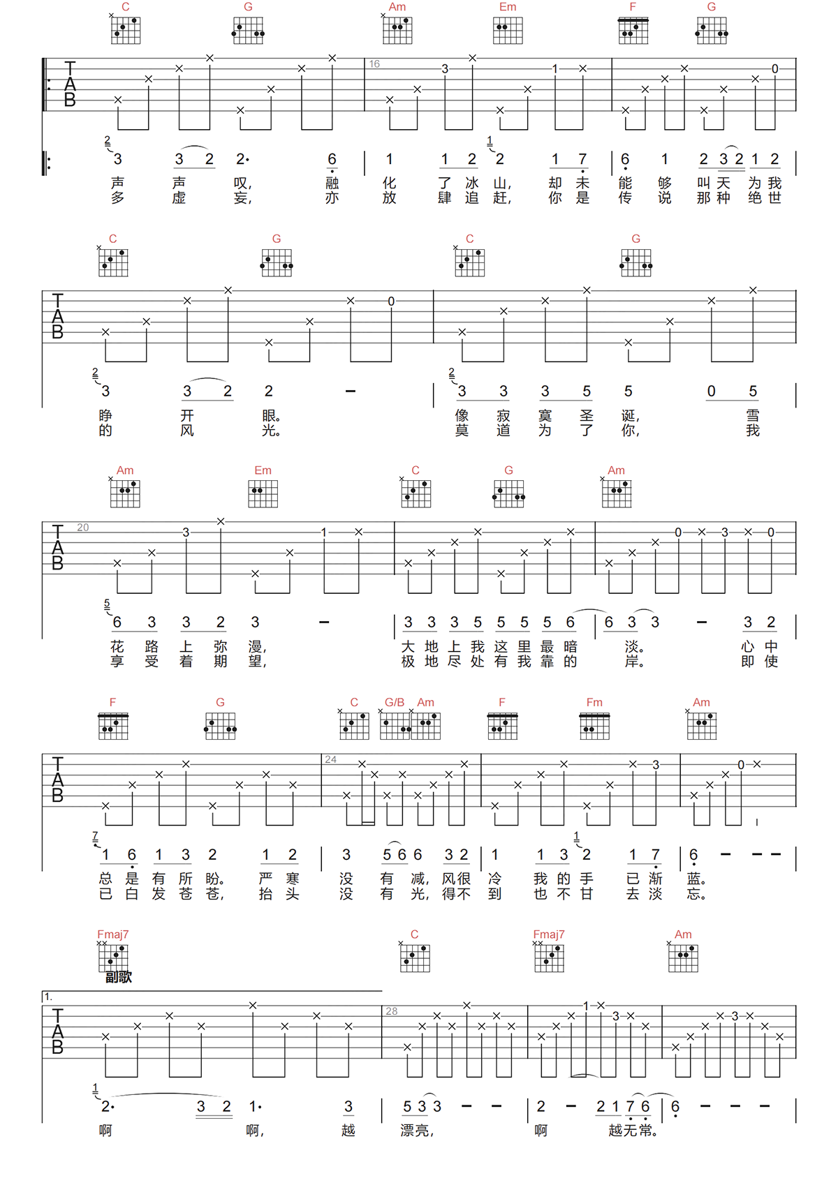 北极光吉他谱-莫文蔚《北极光》C调图片谱-原版六线谱